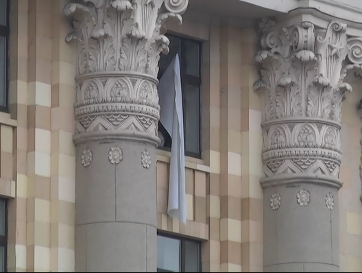 Из окна на шестом этаже вывесили белый флаг. Но штурм не прекратился.
