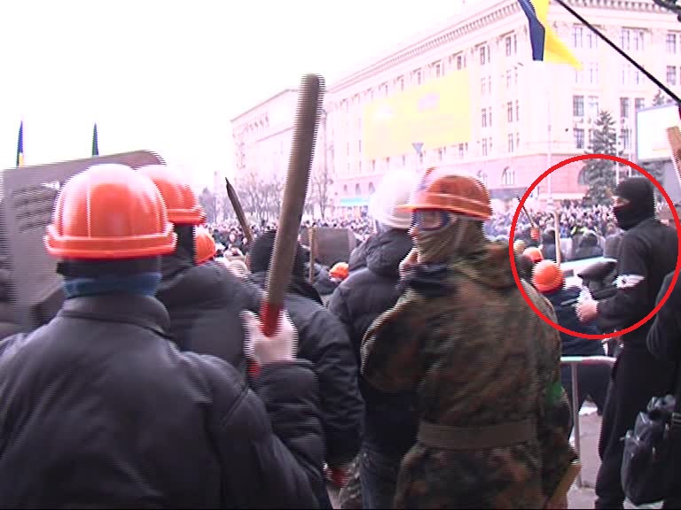 Есть ещё одно видеосвидетельство действий милиционеров. Автор видео — Андрей Бородавка — активный сторонник городских властей, живо радующийся «освобождению обладминистрации» и всему тому, что там произошло.