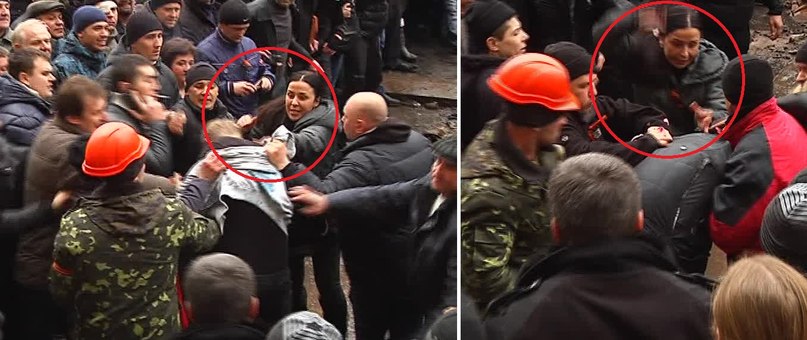 На видео пользователя YouTube под ником Nadia Nadian слышится такой диалог. Он произошёл в тот момент, когда с заднего двора люди выводили ещё одного «пленного» с разбитой головой.