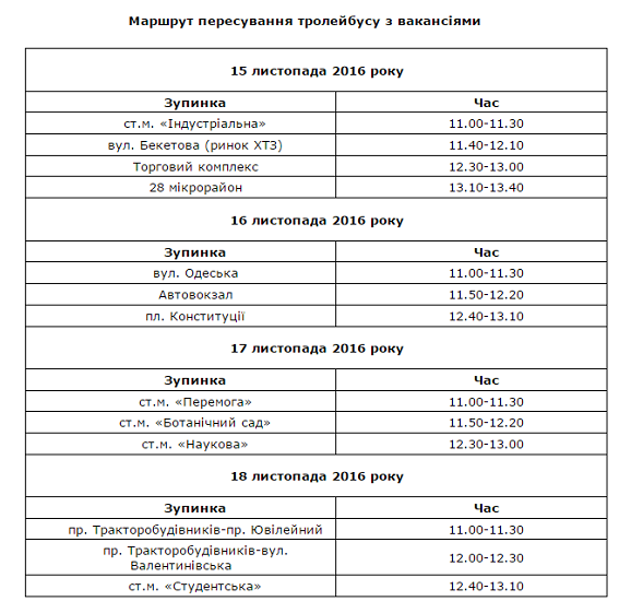 На четыре дня вместе с 10-15 работодателями они станут пассажирами троллейбуса, который объедет Алексеевку, Салтовку, Индустриальный район и район улицы Одесской.