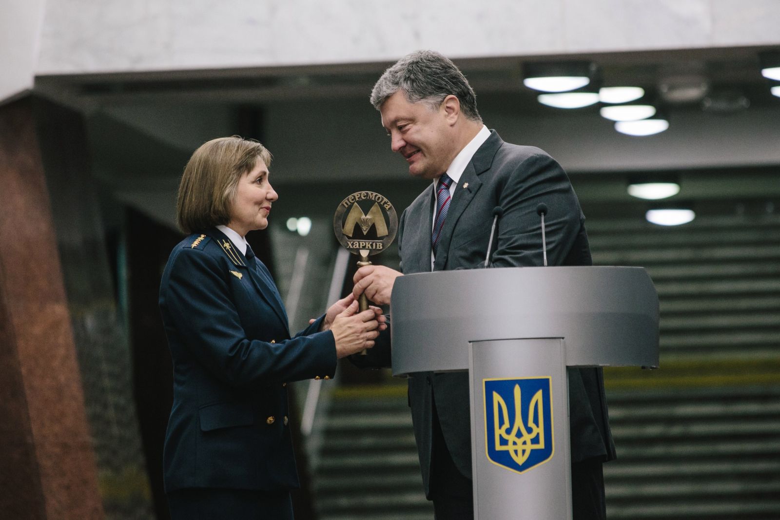 Президент Украины Пётр Порошенко вручил метрополитеновцам символический ключ от станции метро «Победа», но сегодня для пассажиров станцию не открыли.
