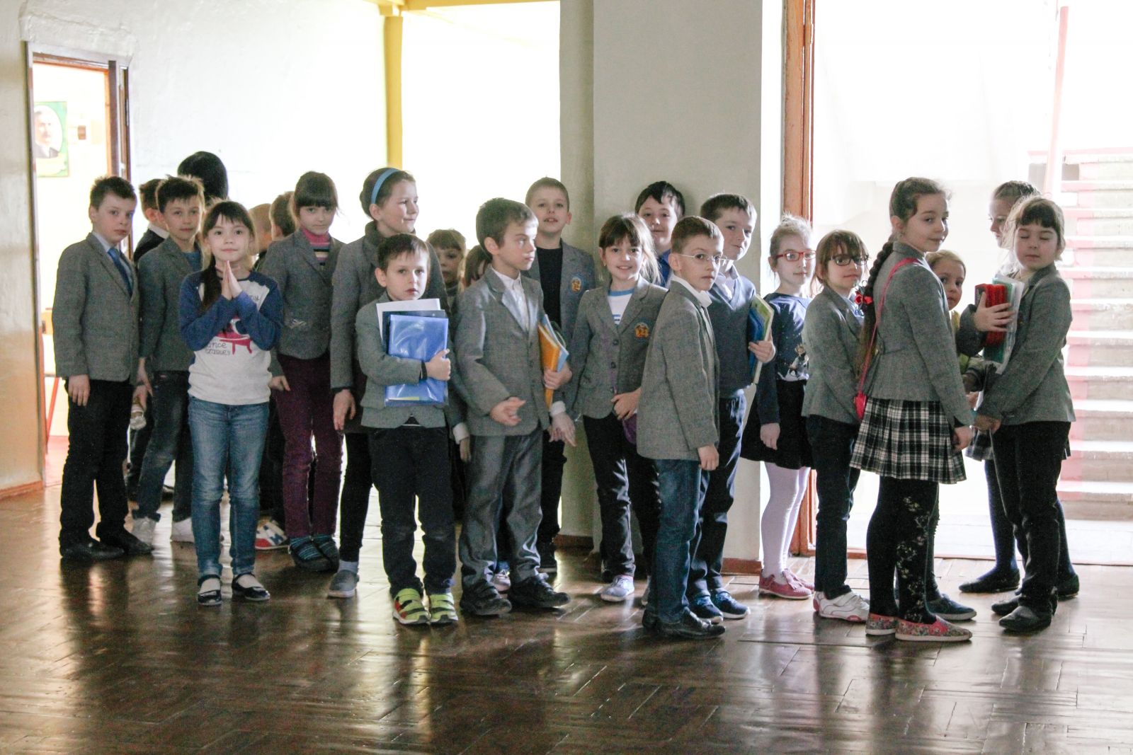 В 1-В есть ещё одна девочка в коляске. «Класс сам к ним потянулся. Я была готова объяснять, что такое толерантность. Но так сложилось, что не надо было, — пожимает плечами классный руководитель Татьяна Андренко. — Дети и так очень добрые».