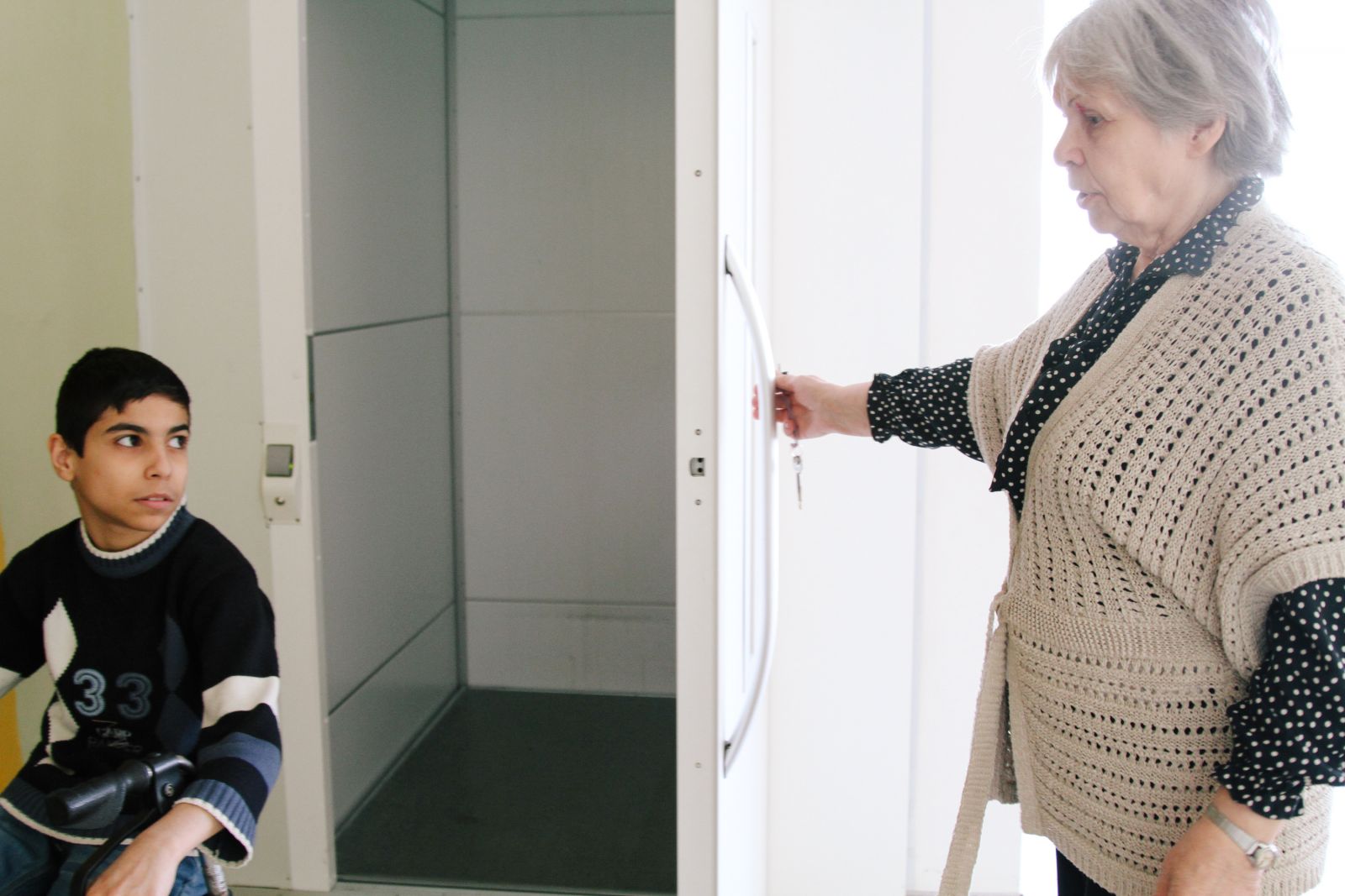 Так, в школе появились лифт, подъёмник в столовую, поручни для ходьбы, специализированные парты и туалеты.