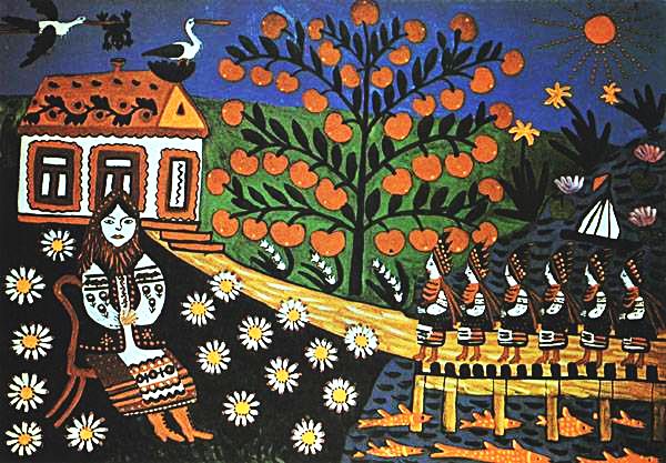 Перевод иллюстрирован картинами украинской художницы Марии Приймаченко.
