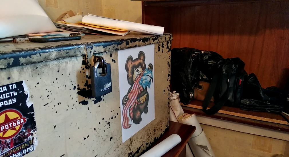 «Где-то в 15.15 группа из 15 человек взломала двери, оторвала наличник, обрушила всё, что было. Стенды, плакаты, лозунги всевозможные, флаги… Не обязательно советские, военных лет. Они не скрывали лица. Два человека из нашей организации видели, как они подымались. «Слава Украине» кричали», — утверждает Тищенко.
