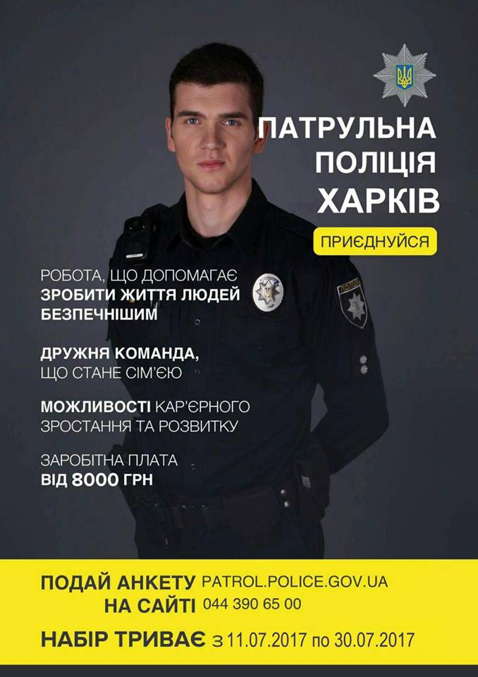 Анкету для участия в конкурсном отборе на службу в Управлении патрульной полиции Харькова можно подать до 30 июля.