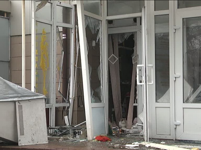 Взрыв повредил банкомат, он отвалился от здания и «раскрылся». Но кассеты с деньгами остались на месте, утверждает пресс-служба «ПриватБанка».
