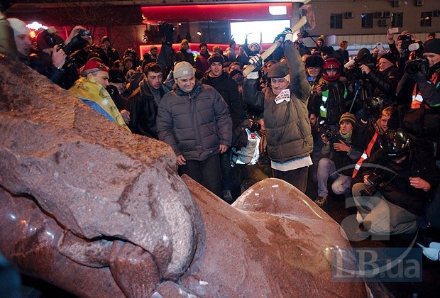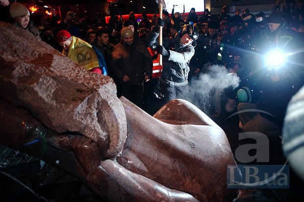 В Киеве снесли памятник Ленину