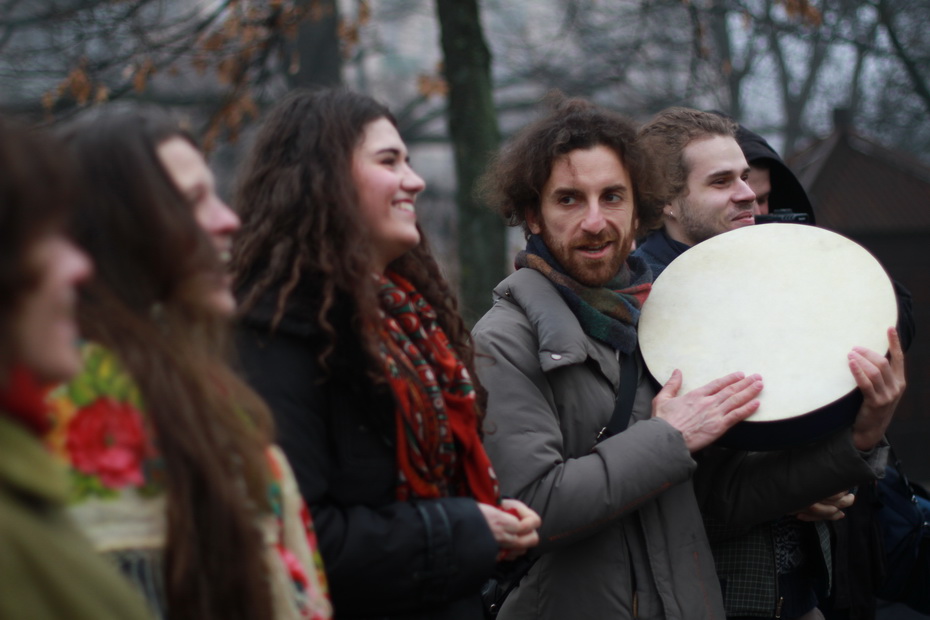 Для будущих молодожёнов музыкальный подарок приготовили актёры театра «Босоногие». Они спели две свадебные песни на украинском языке. После колонна велосипедистов проехалась по центру города.