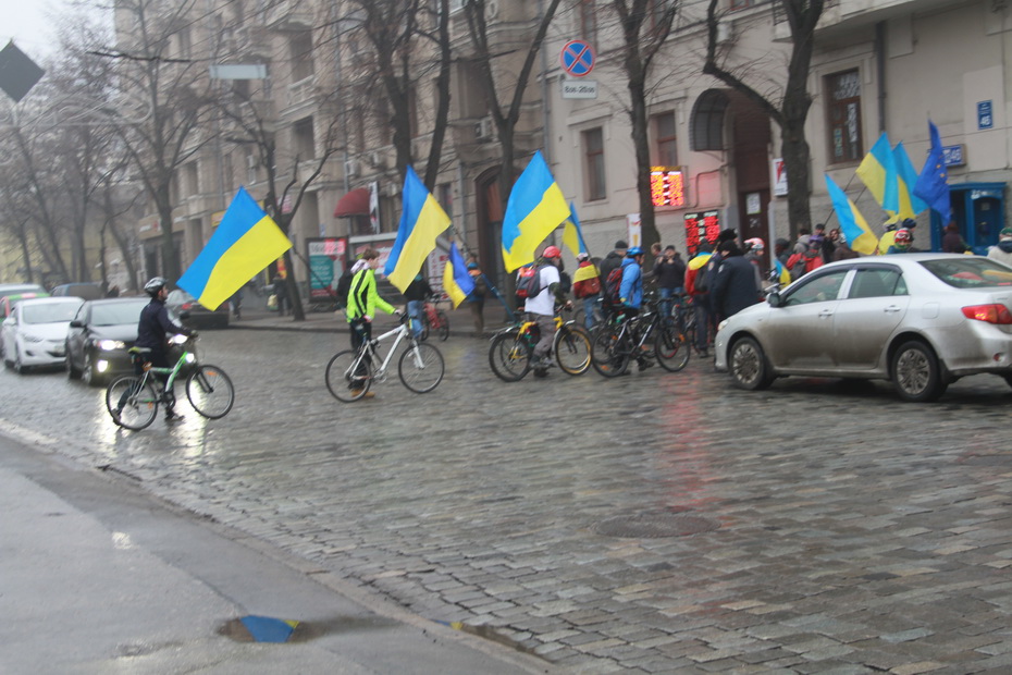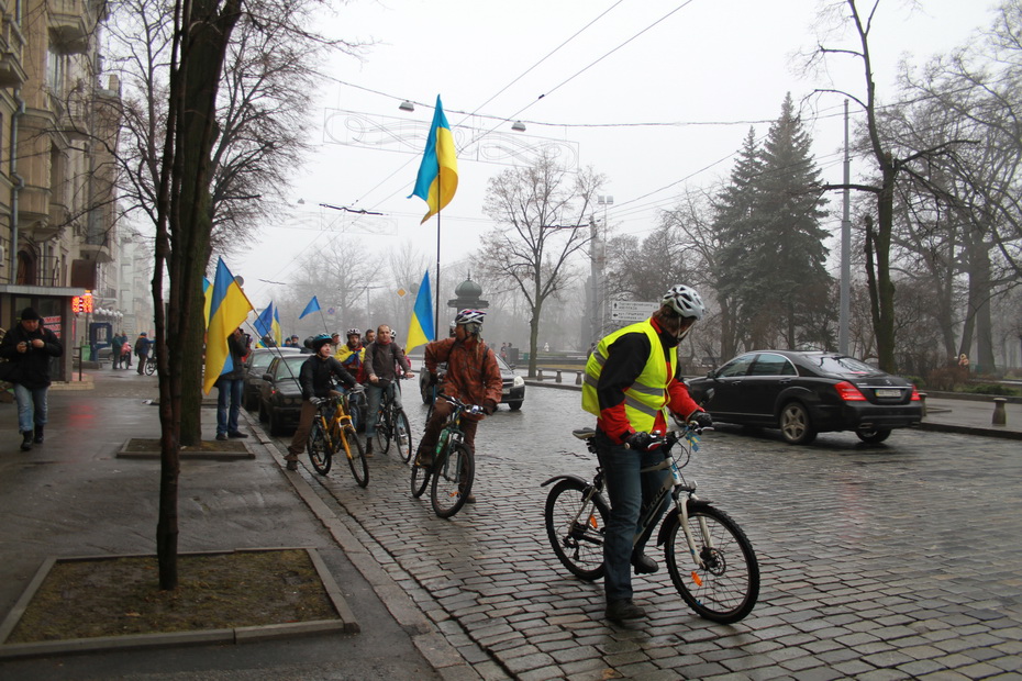 Харьковчане проводят ВелоМайдан уже второй раз. Первый был в январе — тогда велосипедистам пришлось пробираться сквозь снега. Следующий велозаезд будет в марте, рассказал организатор акции Константин Васюков.