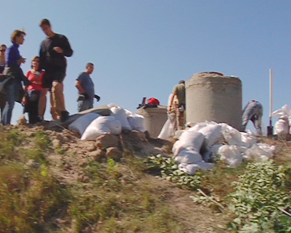 «Я частный предприниматель», — рассказывает Татьяна, не отвлекаясь от работы: она набирает землю в мешки и подает наверх другим, чтобы относили. И удивляется вопросу, зачем нужно сооружать такие фортификационные рвы.
