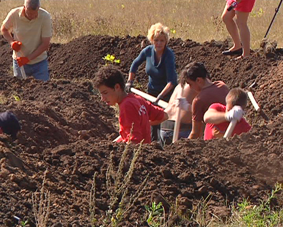 Волонтёры в помощь. Добровольцы копают оборонительный ров на границе