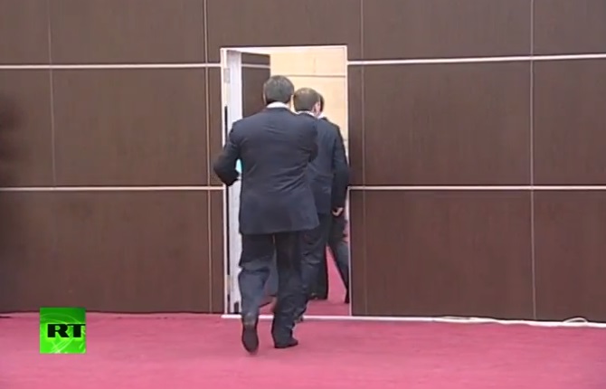 Выступая перед журналистами, Виктор Янукович уложился меньше, чем в десять минут. Возможности журналистам задать вопросы Янукович и организаторы пресс-конференции не предусмотрели. После выступления, в котором бывший глава государства снова оговорился (вместо, как планировал, «законный президент», сказал «незаконный»), он быстро удалился, не обращая внимания на выкрики журналистов из зала.