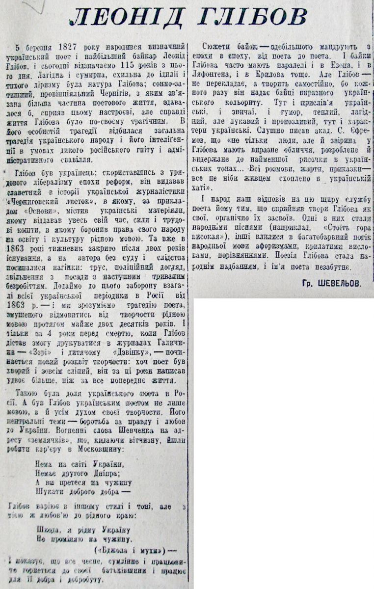 Шевельов Гр. «Леонід Глібов». 5 марта 1942, №44