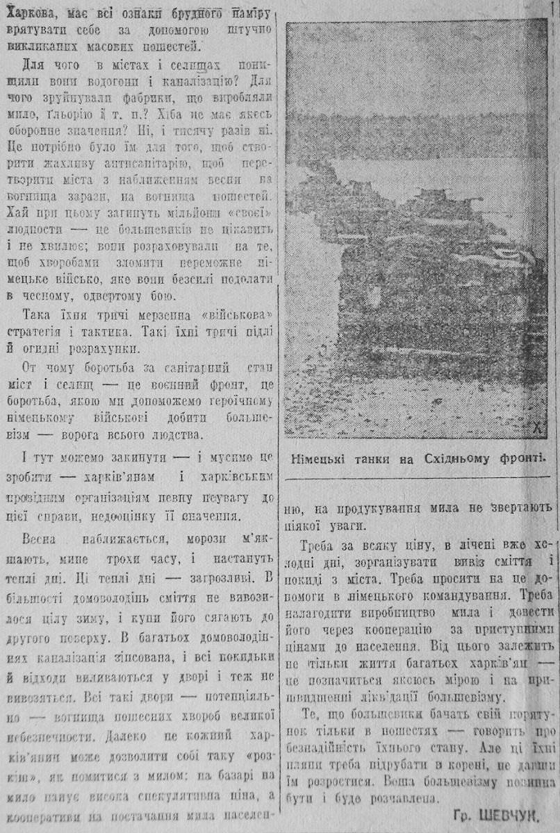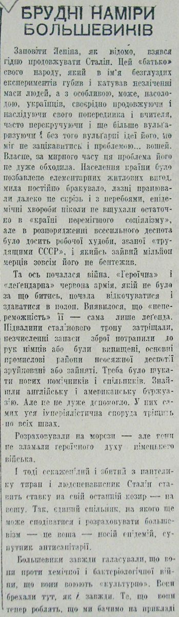 Шевчук Гр. «Брудні наміри большевиків». 21 февраля 1942, №34