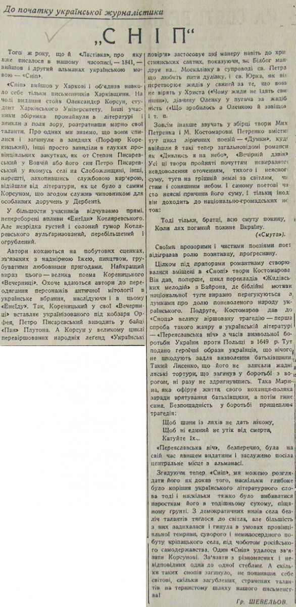 Шевельов Гр. «Сніп» (До початку української журналістики). 15 марта 1942, №53