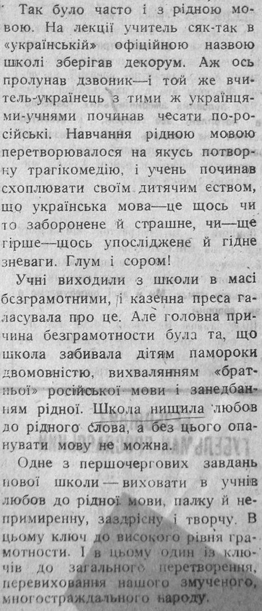 «Можливості були обмежені. Міжнародна інформація надходила з німецьких джерел, пересіяна й цензурована, редакційної думки ніхто тут не питав. Ніякої програми на майбутнє газета не могла мати, на це була відповідь, що спочатку треба виграти війну, а тоді ладнати всі справи. Про минуле українське теж належало мовчати в усіх тих випадках, коли воно було хоч трохи самостійне, а ще більше — коли самостійницьке. Єдине, що було дозволене, це критика недавнього совєтського минулого. Але і це вже було для нас, для мене щось. Речі з того минулого можна було назвати своїми іменами, можна було згадати факти утисків і переслідувань, і цю можливість, фактично майже єдину, треба було використати». (стр. 355, изд. «Фолио», 2012 г.)