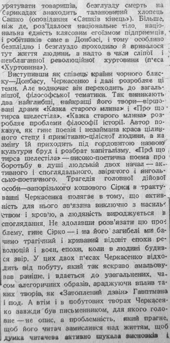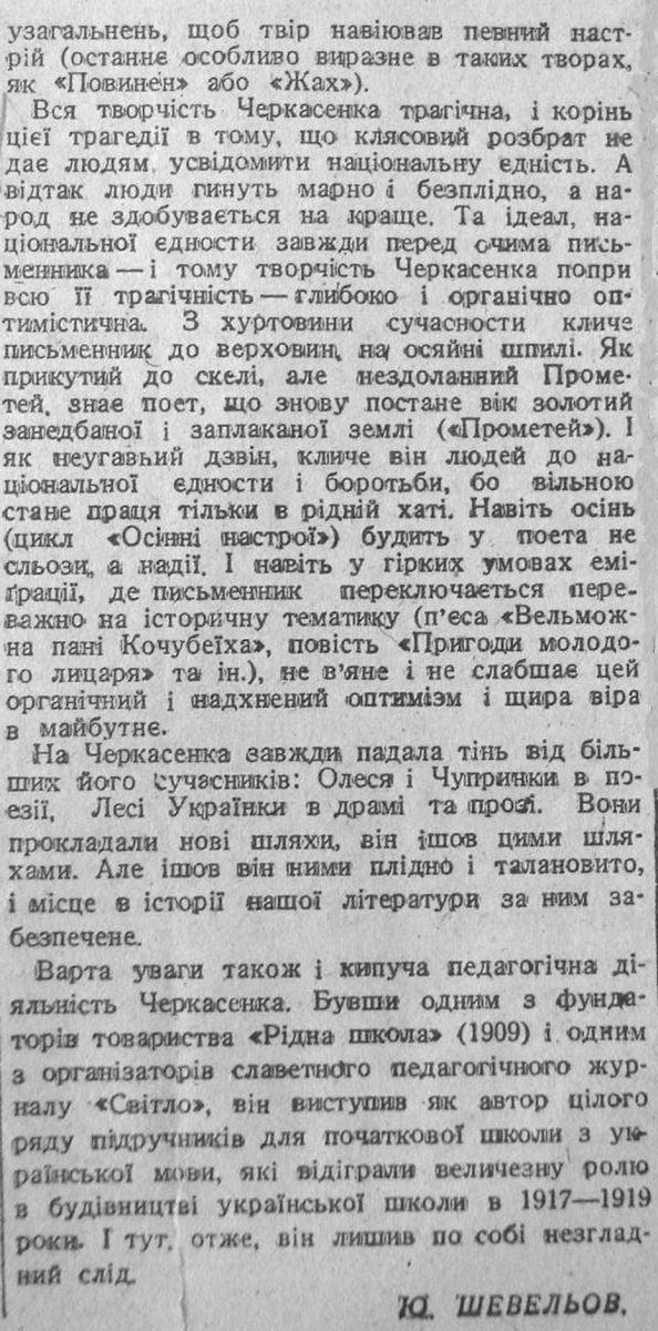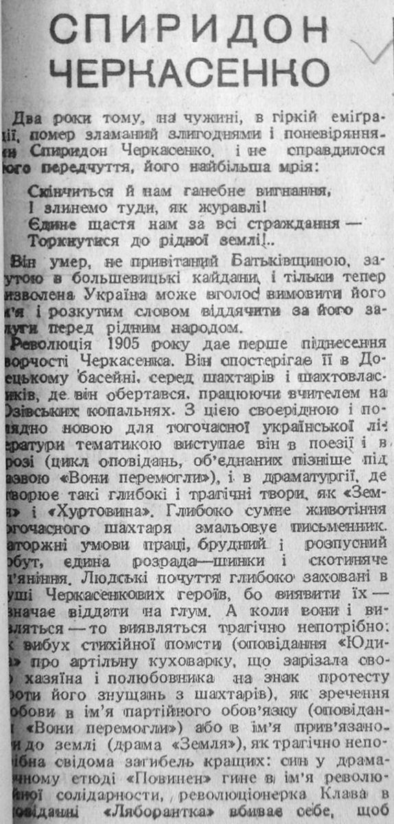 Шевельов Ю. «Спиридон Черкасенко». 1 ноября 1942, №247