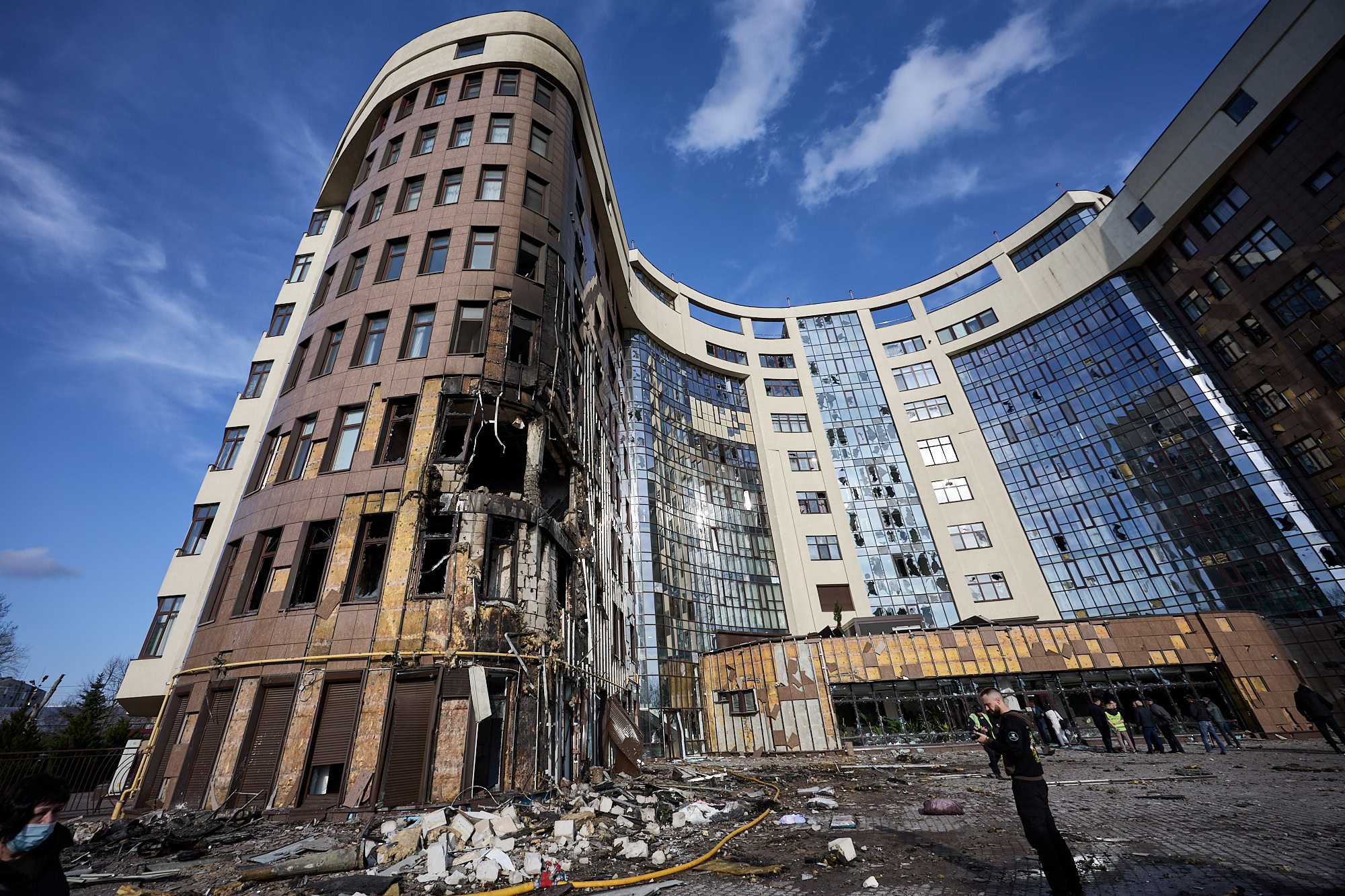 У житловому будинку в районі Центрального парку, що вдень 2 квітня потрапив під обстріл, є квартири, пошкоджені вогнем.
