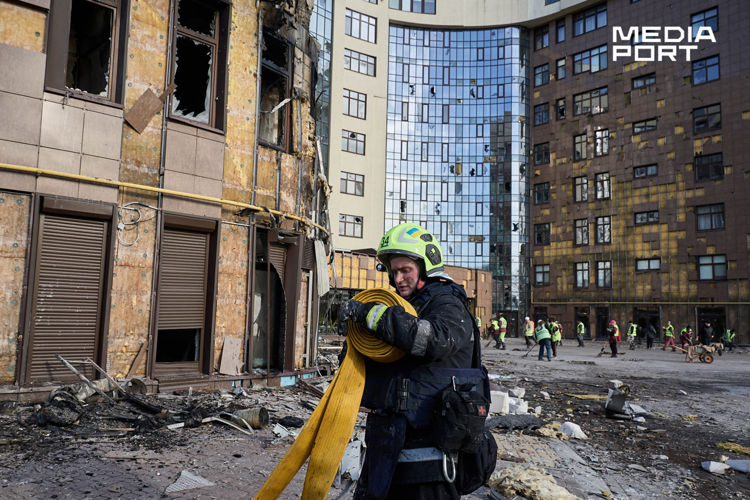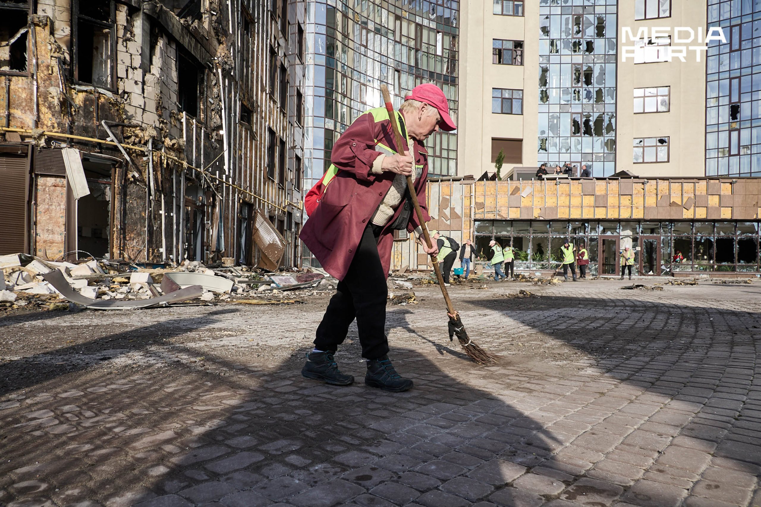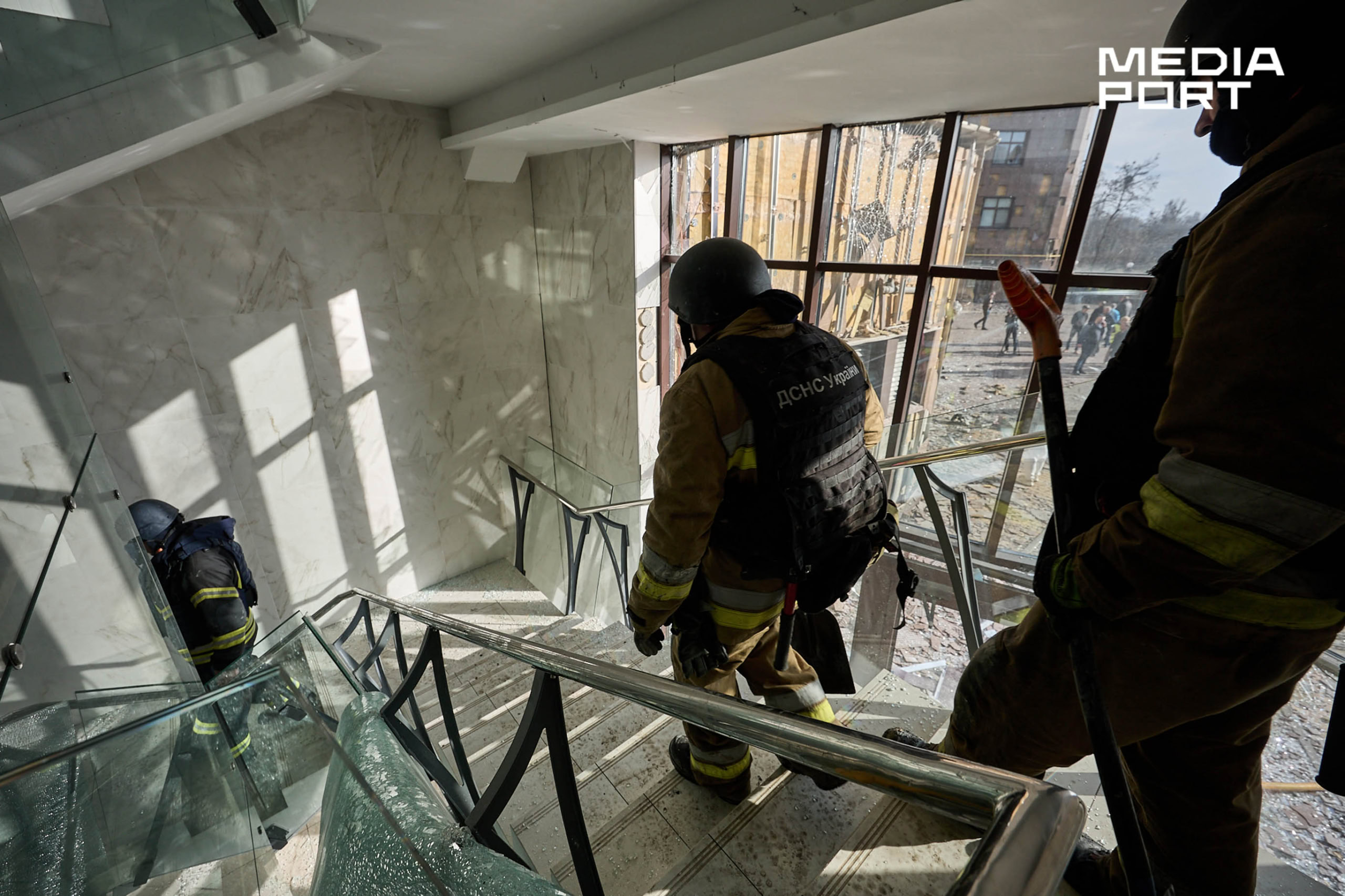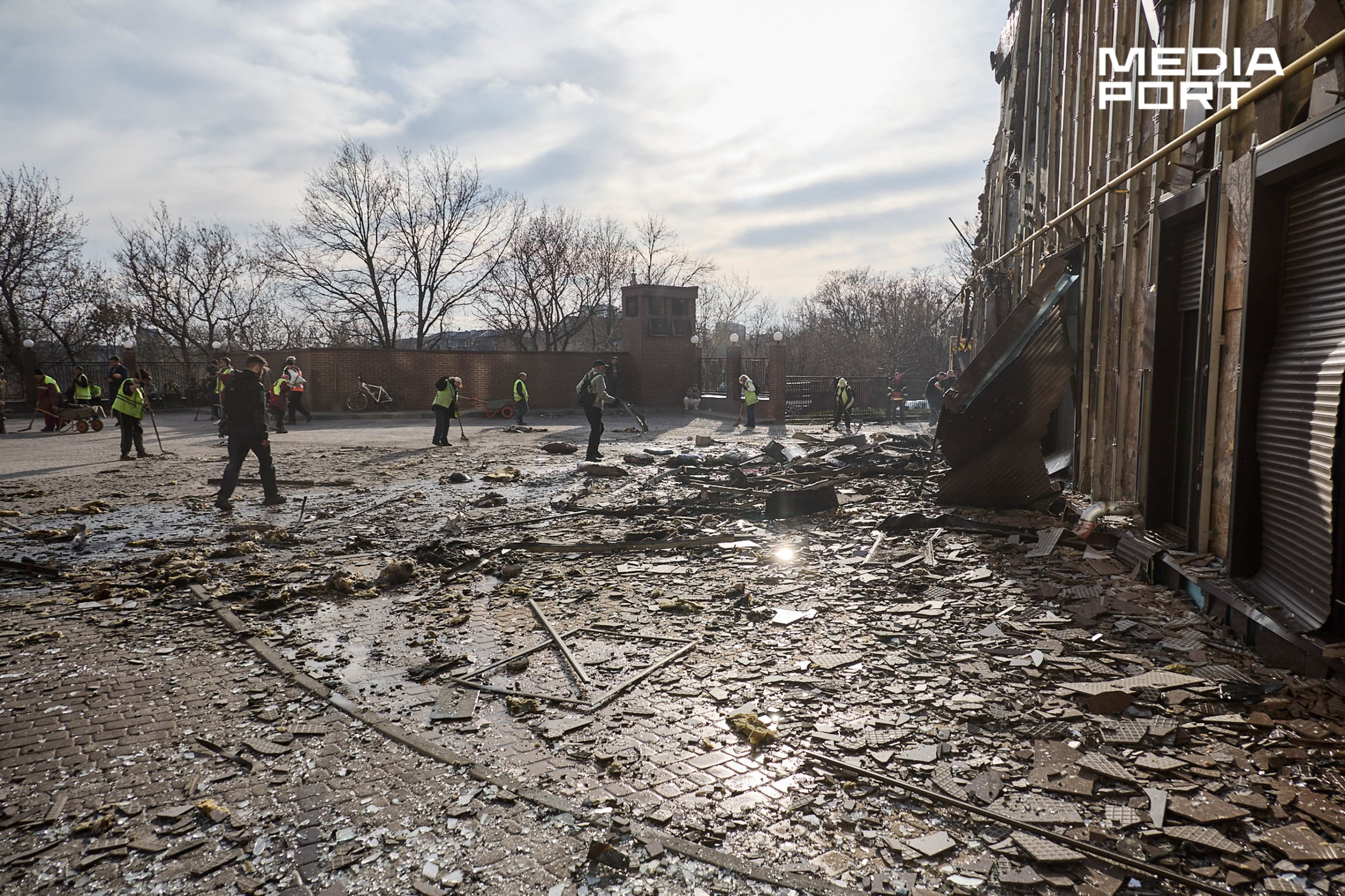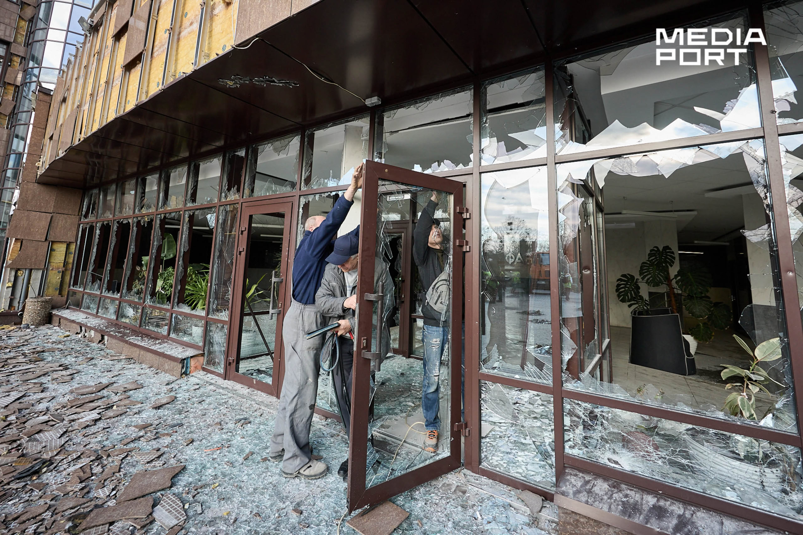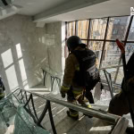Правоохоронці фіксують наслідки ударів. Комунальники прибирають руїни та забивають вікна.