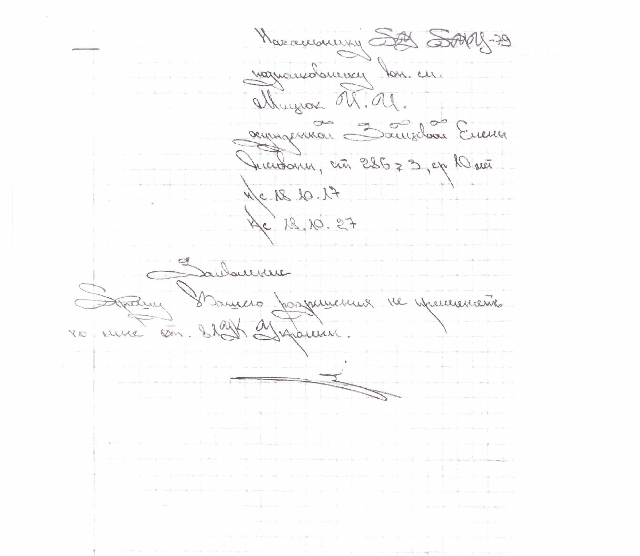 «Також повідомляємо, що засуджена Зайцева О.О. надала власноруч написану заяву про відмову застосування до неї умовно-дострокового звільнення згідно ст.81 КК України (копія заяви додається)», — повідомили в управлінні.