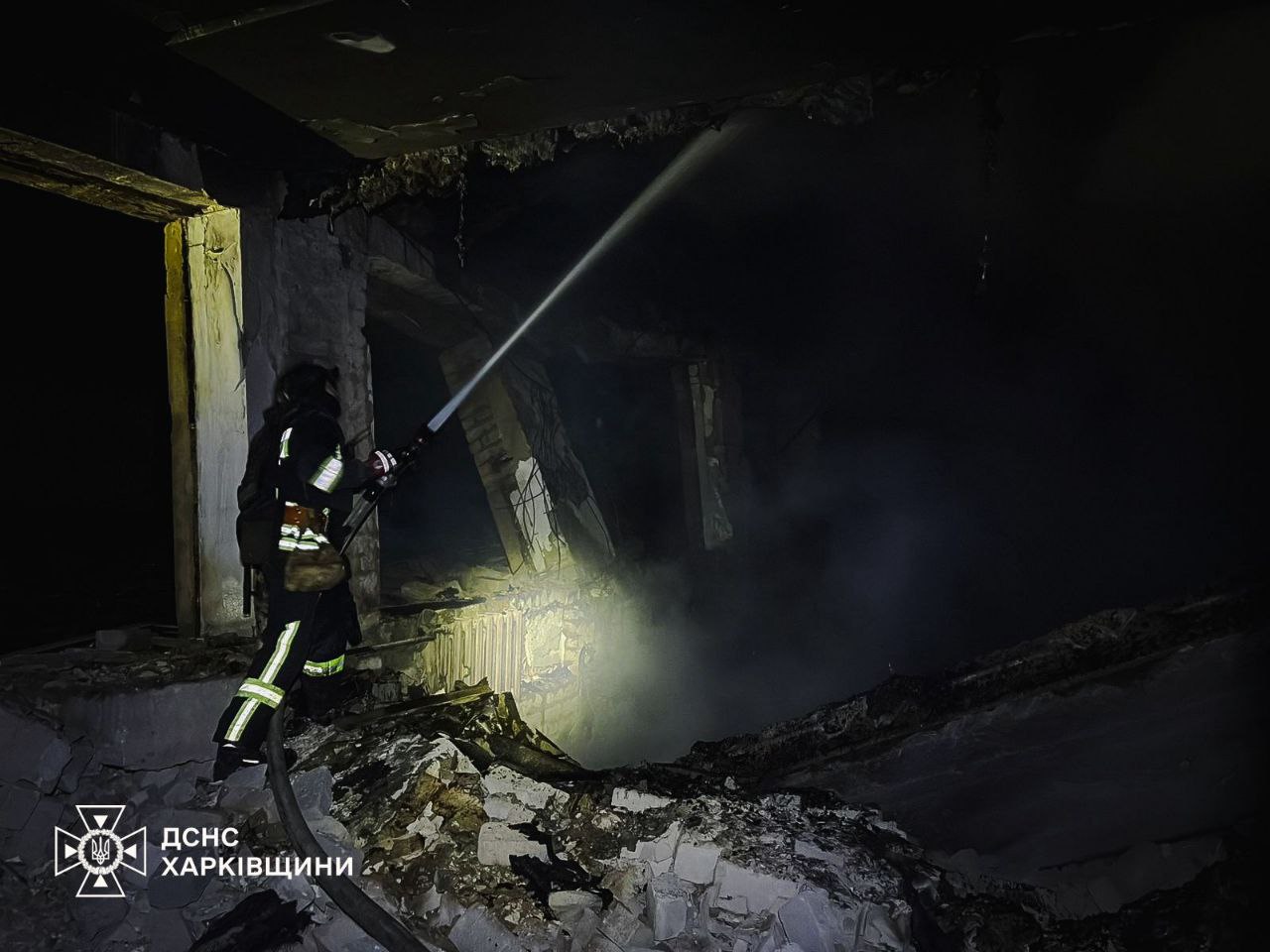 Дрони влучили в ліцей у селі Підсереднє Великобурлуцької громади. Спалахнула пожежа, полум’я поширилося на 250 кв. м.