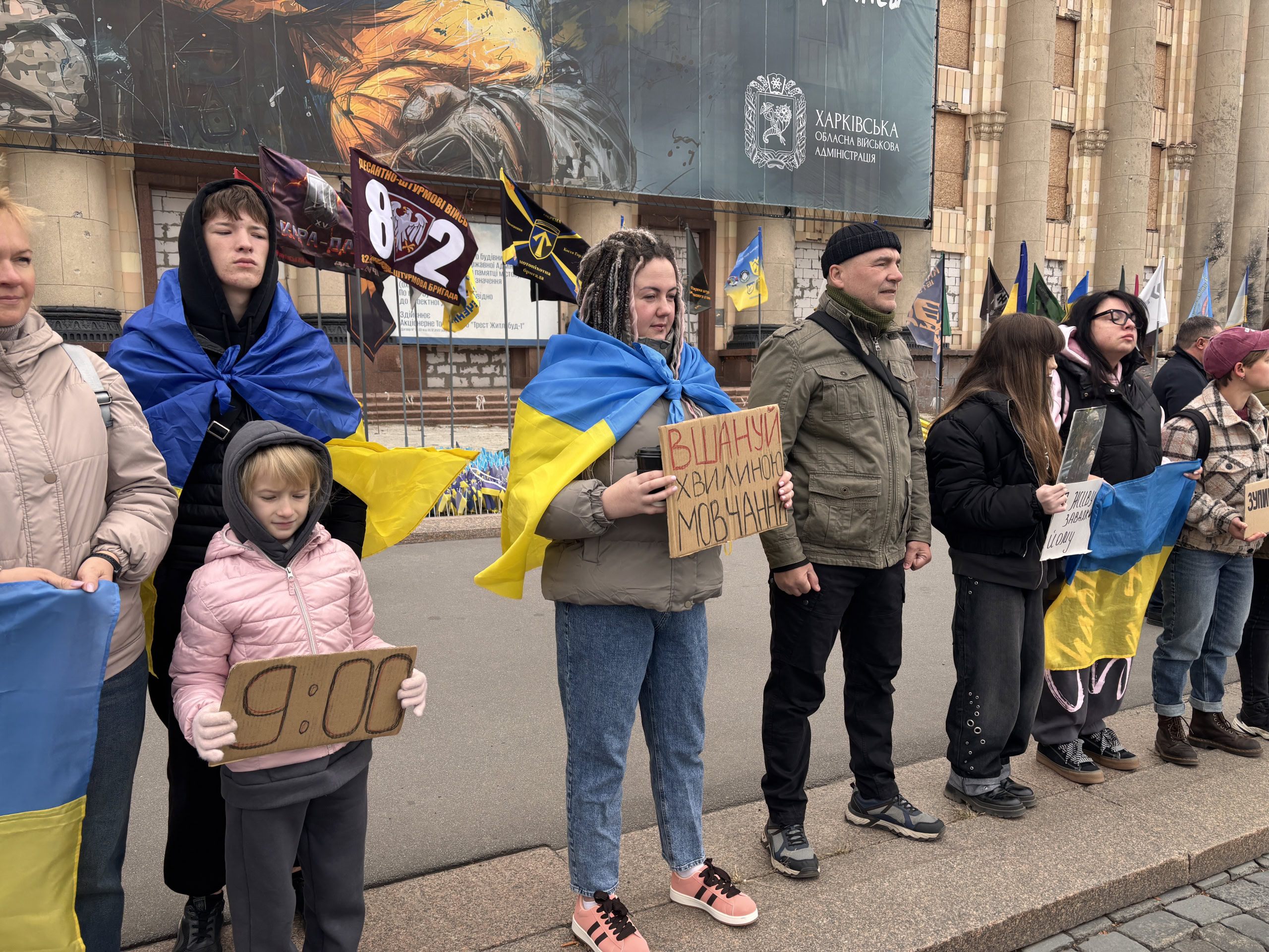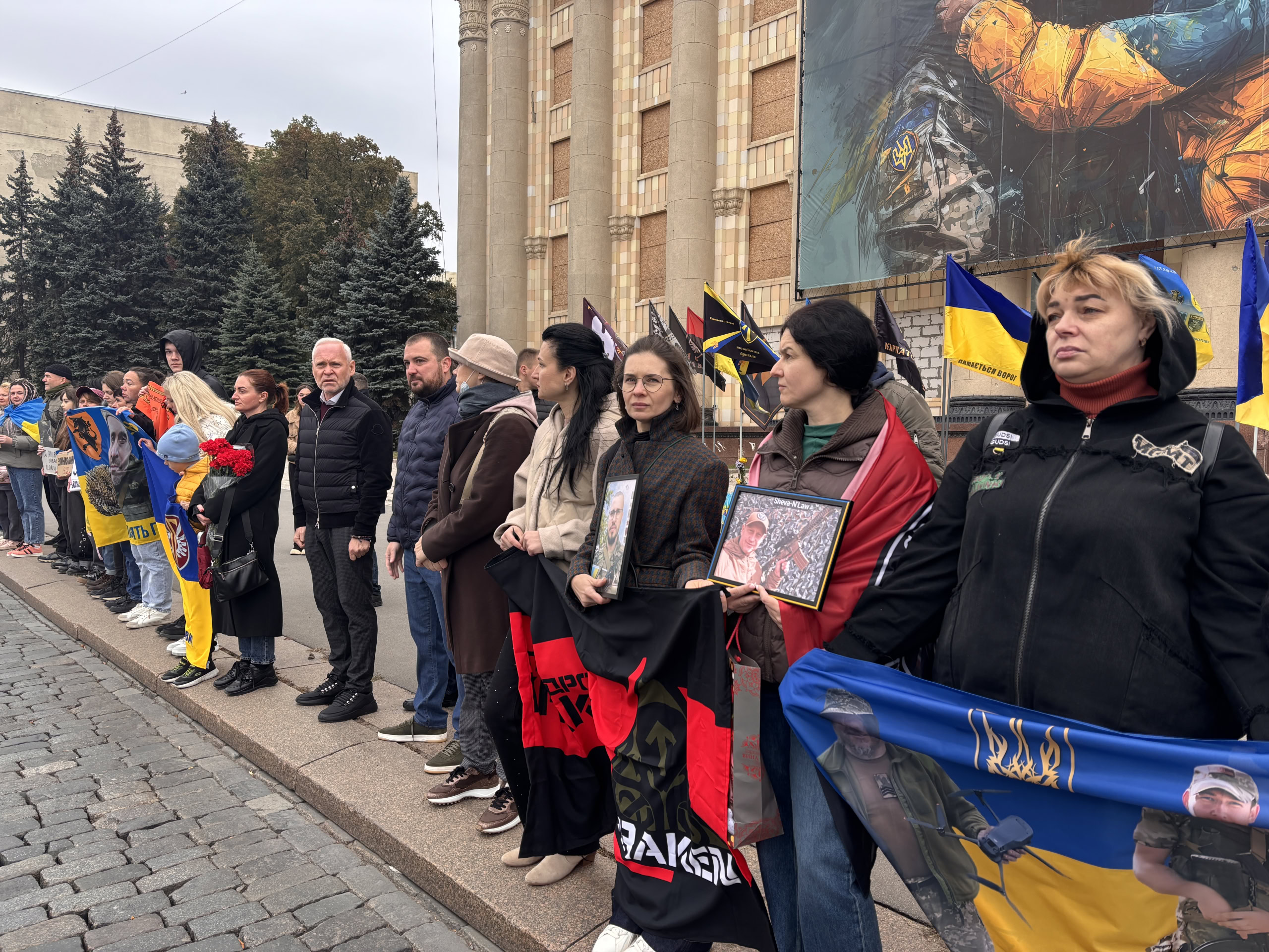 У День захисників і захисниць України 1 жовтня на майдані Свободи в Харкові зібралися рідні загиблих військових.