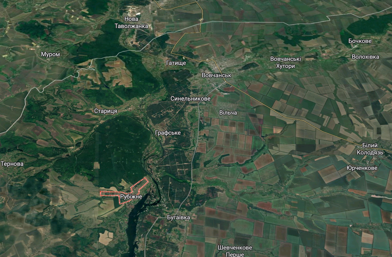Село Рубіжне належить до Вовчанської громади та розташоване приблизно за 20 км від Вовчанська, де тривають бої.