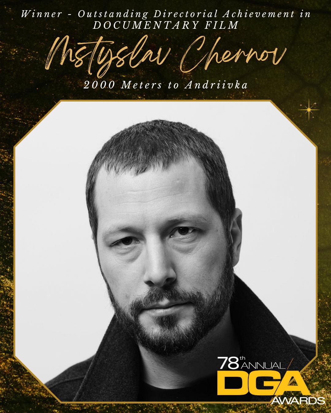 «Мстислав Чернов став переможцем премії Гільдії режисерів Америки! Його стрічка «2000 метрів до Андріївки» отримала нагороду в категорії «За видатне режисерське досягнення в документальному фільмі», — йдеться в дописі.