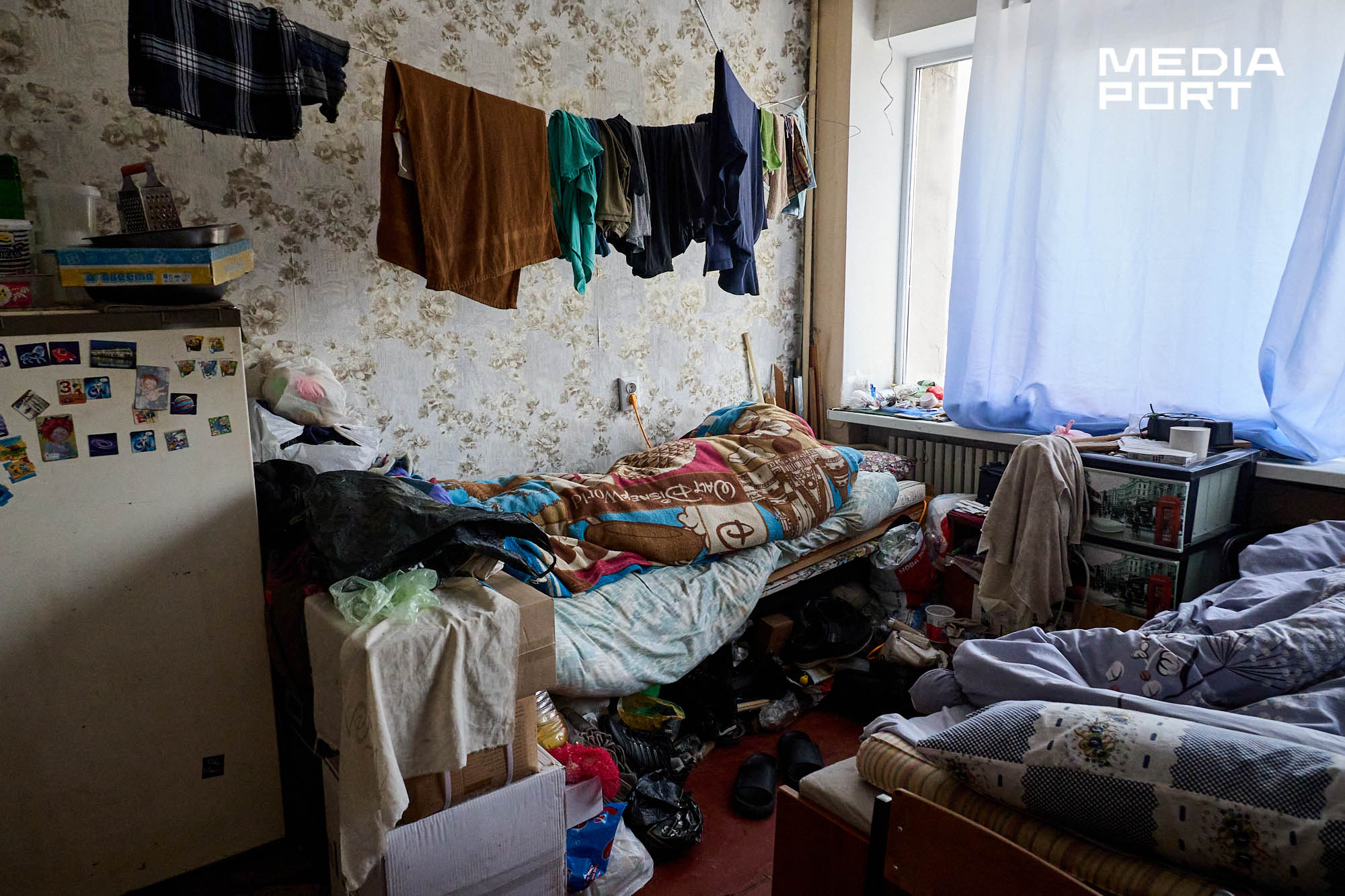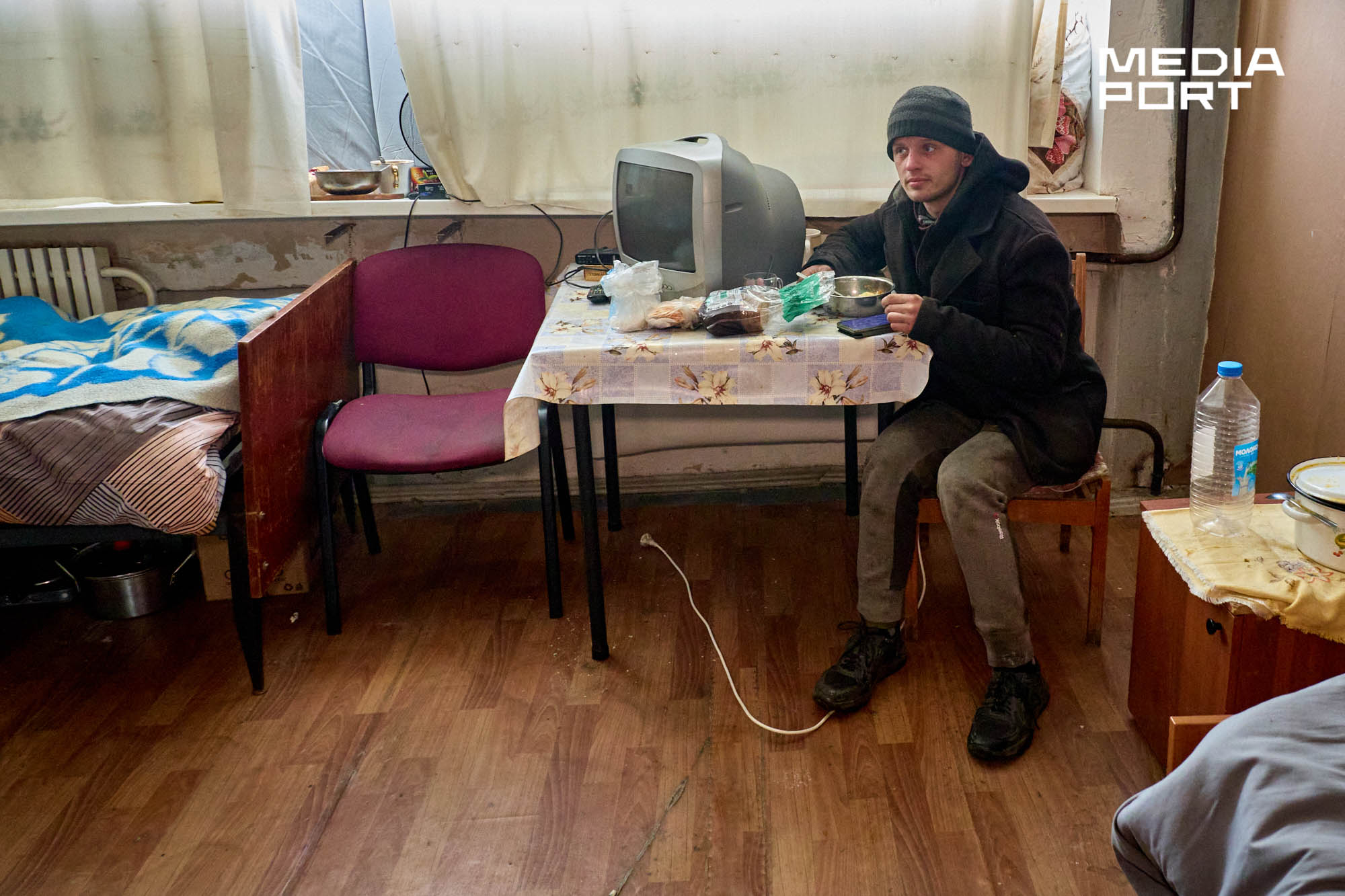 «Якби не було матраців — з вікна дує страшне. У куртках спимо, кутаємось у ковдри. Дали ще ковдри. Двері тримаємо відчиненими — хоч з кухні тепло заходить», — розповідає Давид.