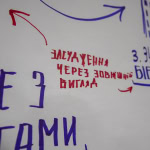 Так виглядає одна із вправ на тренінгу проєкту «Інклюзивна відбудова». Його мета — проаналізувати міський простір крізь призму жіночого досвіду і сформулювати пропозиції щодо його покращення. До першої офлайн-зустрічі долучилось 26 дівчат та жінок з Харкова, а також один хлопець. Переважна більшість — школярки, студентки, волонтерки.