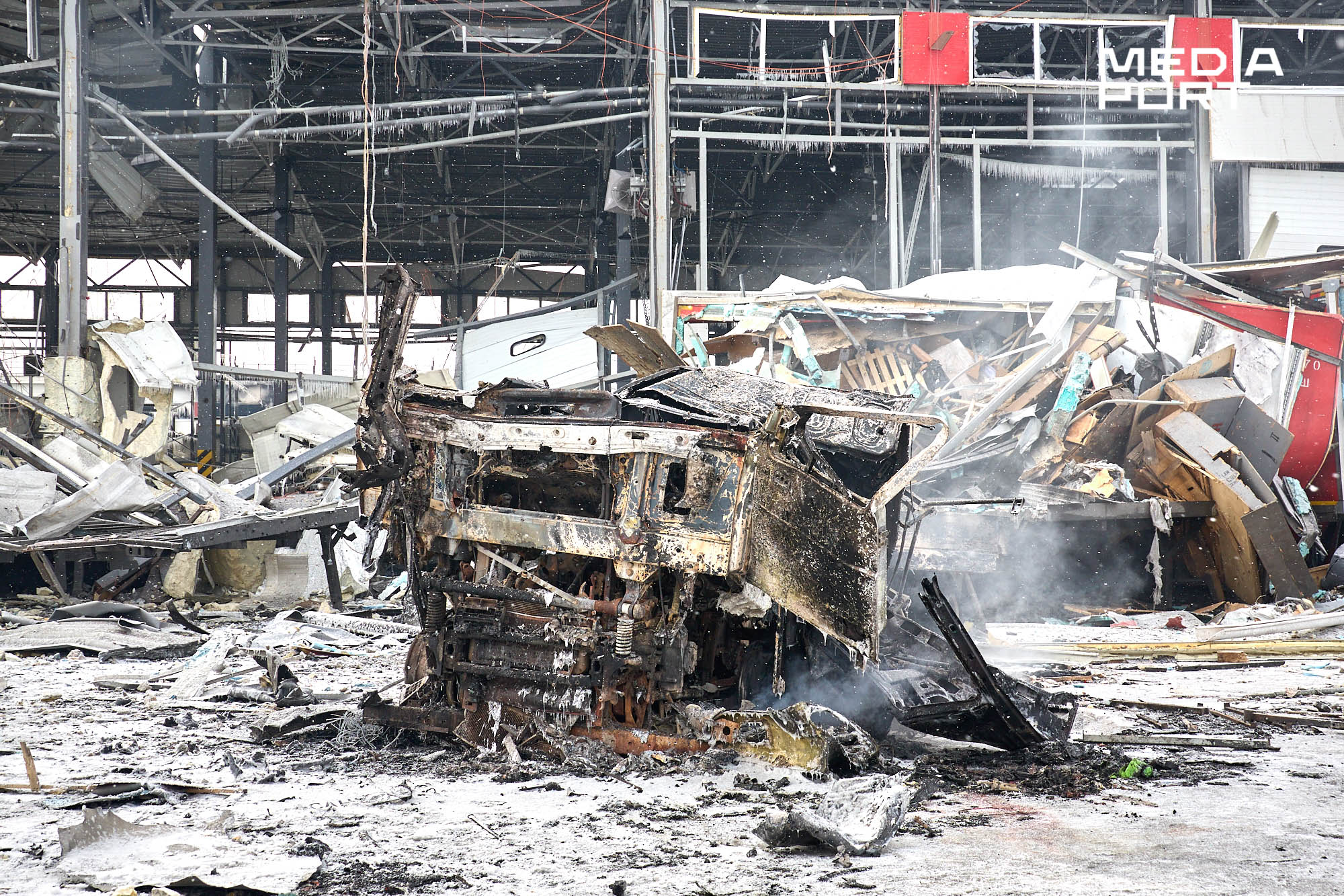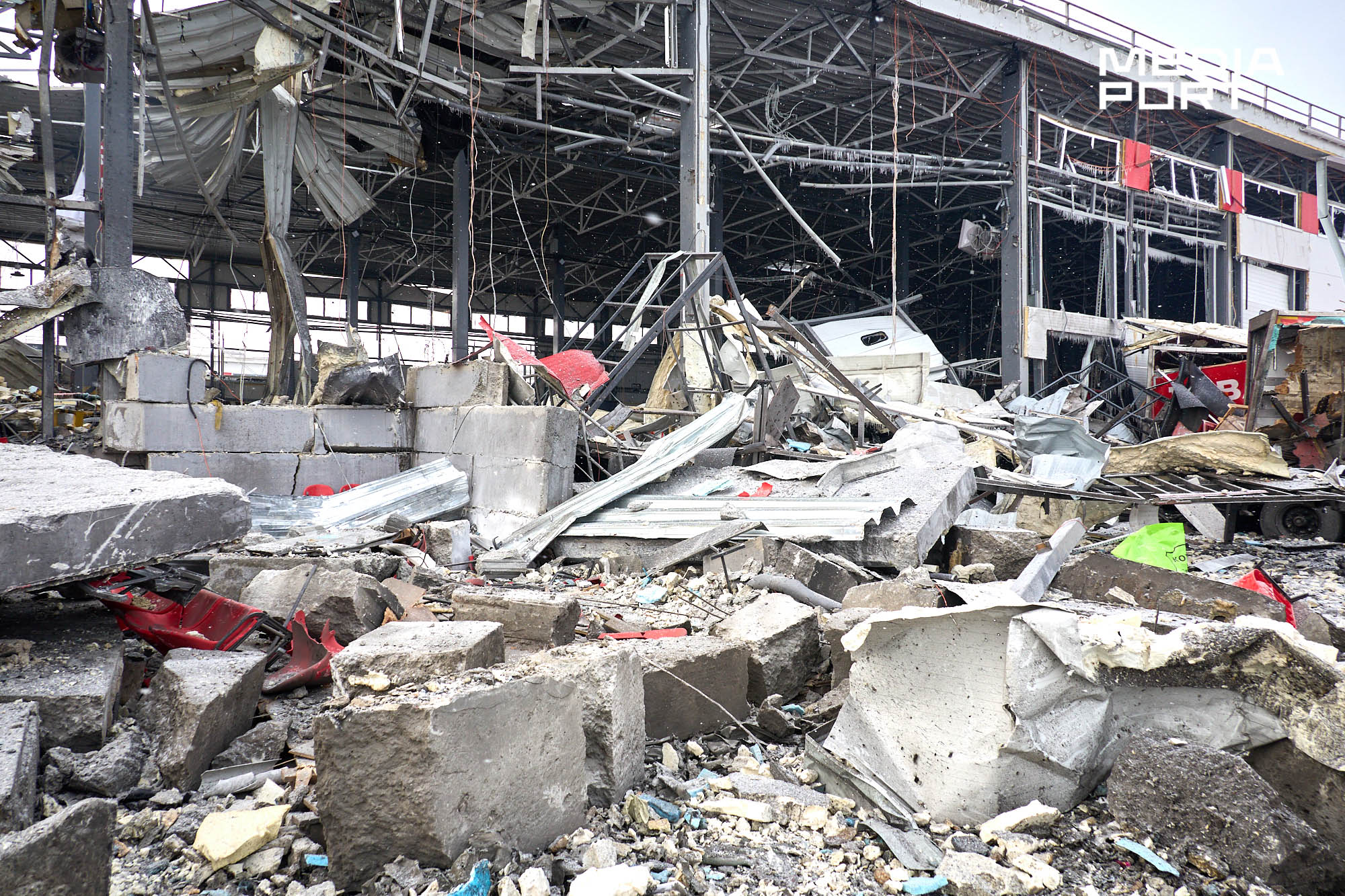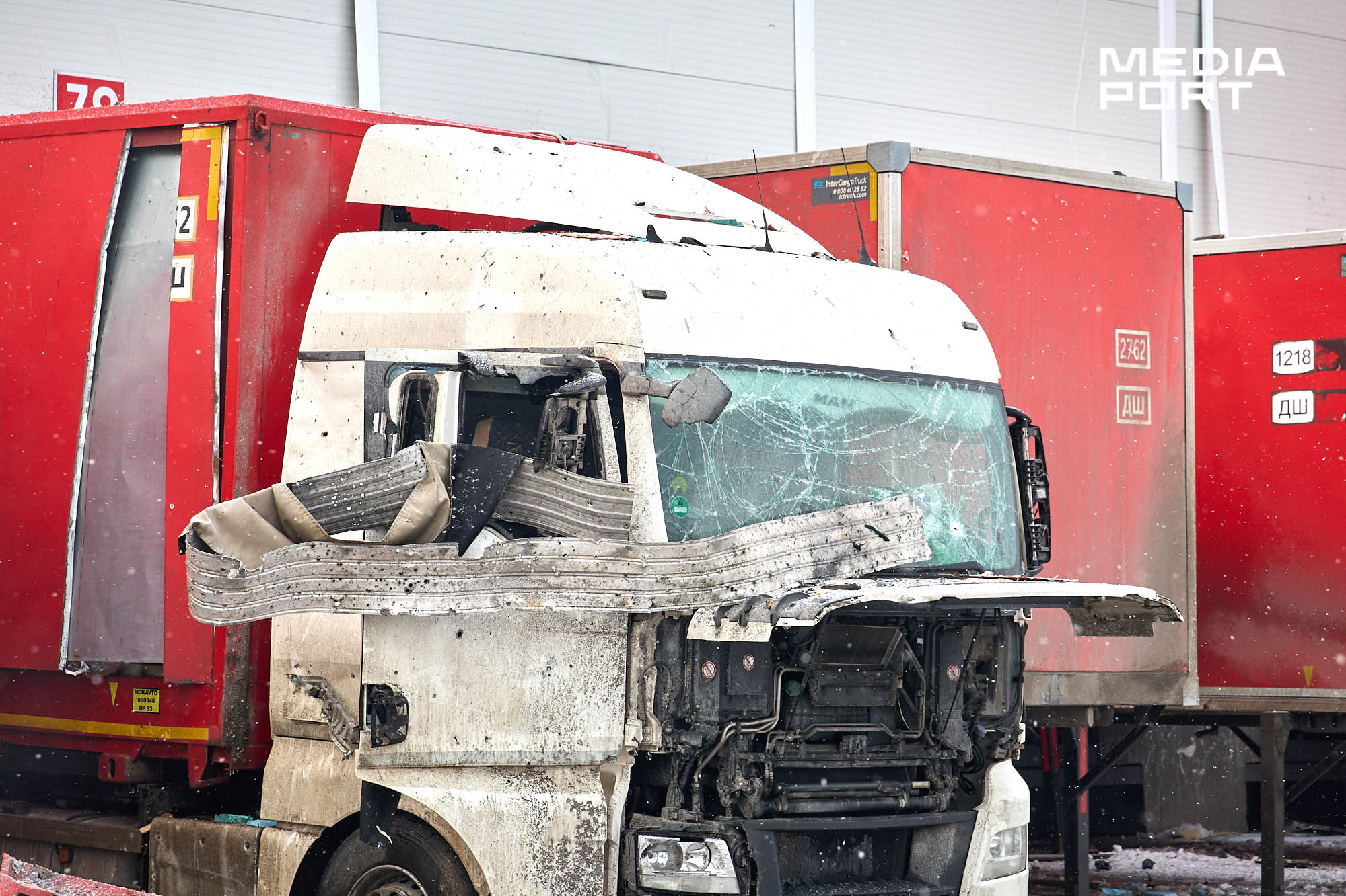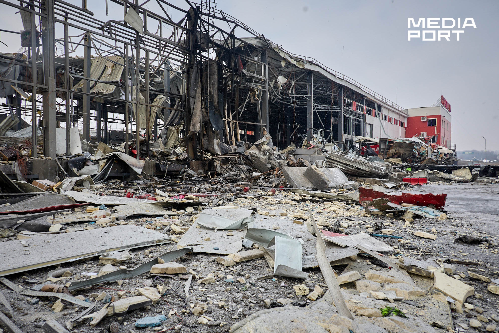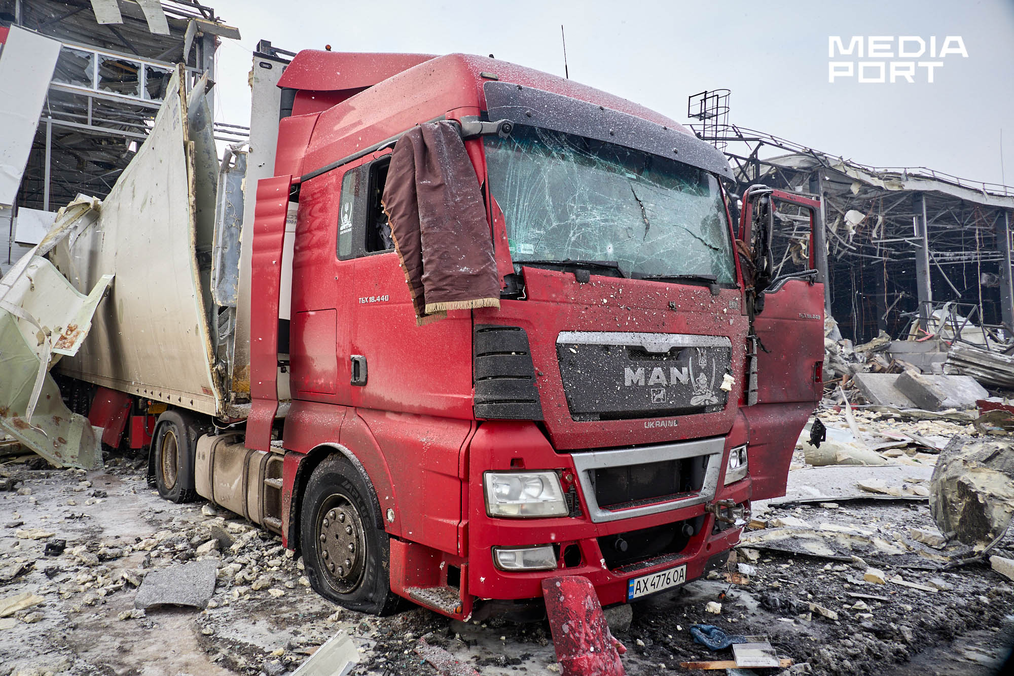 За повідомленням компанії, вантажний термінал Харківського інноваційного центру майже знищено, частково пошкоджено поштовий.