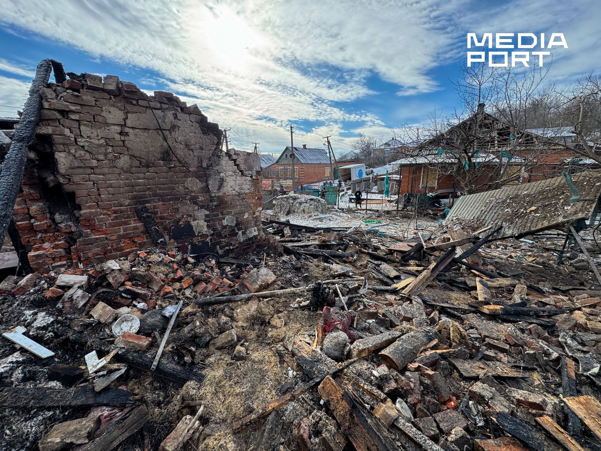 9 лютого у Богодухові внаслідок удару дрона загинув 10-річний Михайло Спіцин та його мати Світлана. Вибратися з-під завалів дому вдалося старшому брату загиблого хлопця Костянтину. Ще двох сестер та батька вдома не було.