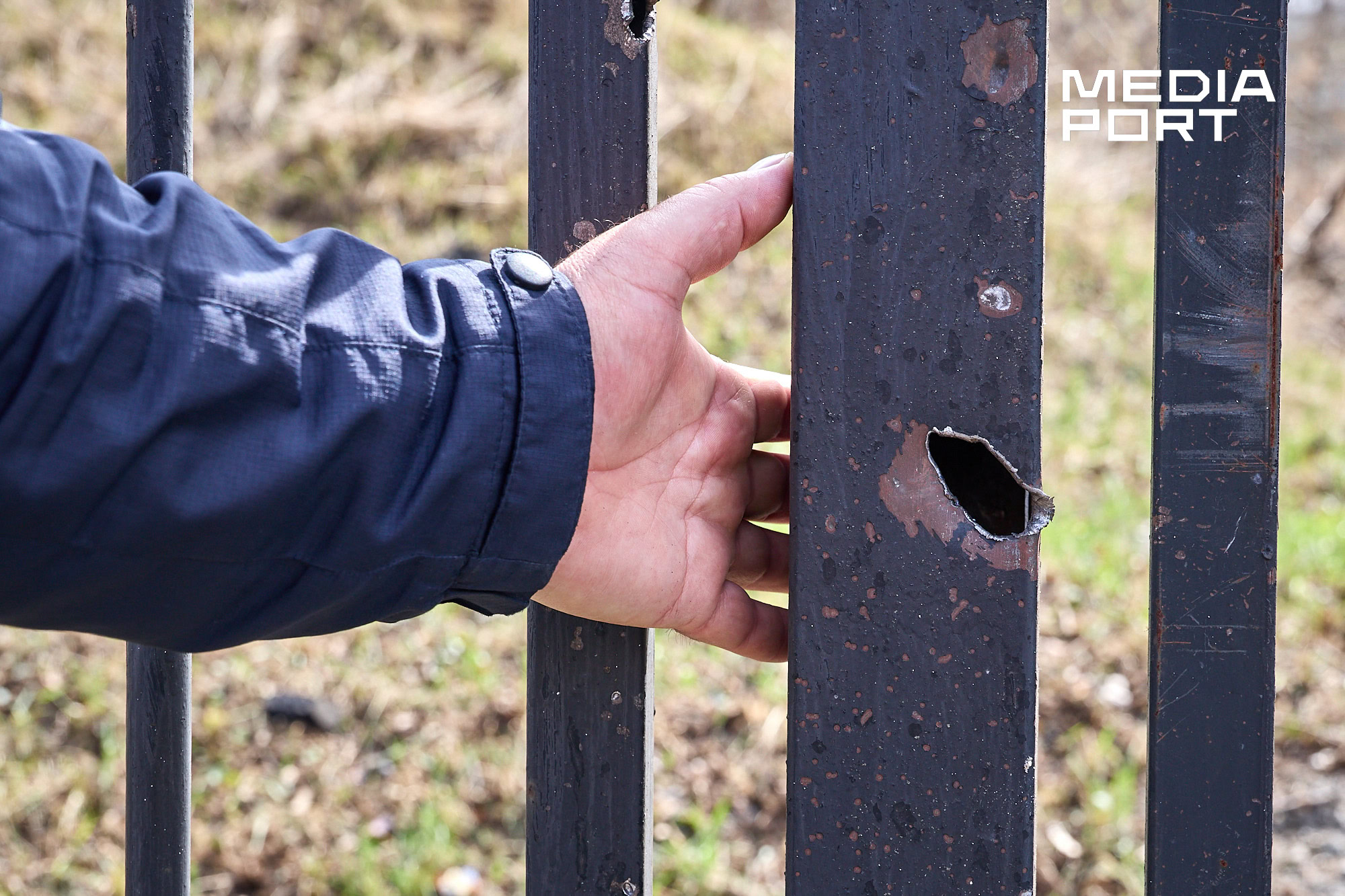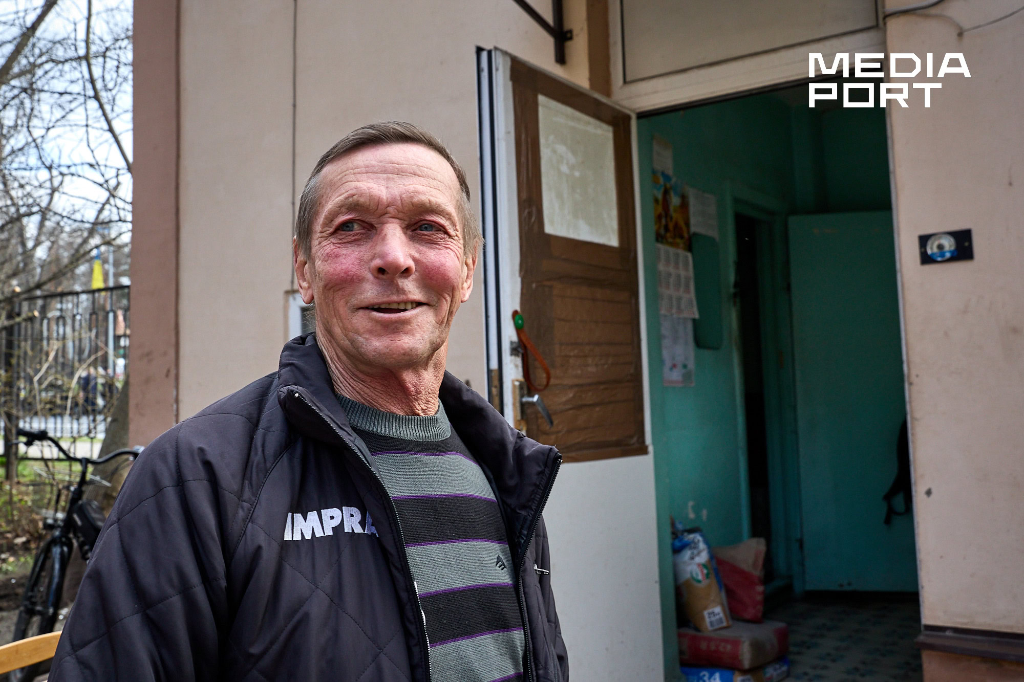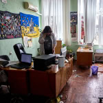 Охоронець диспансеру і переселенець із Куп’янська Олександр Рудік, був на робочому місці в момент удару. У своїй сторожці чоловік прибирає скло з вибитого вікна і показує ікону у куті. Каже, вона охороняє його, як і чорна киця Соня. Російський безпілотник вдарив у дорогу недалеко від нього.