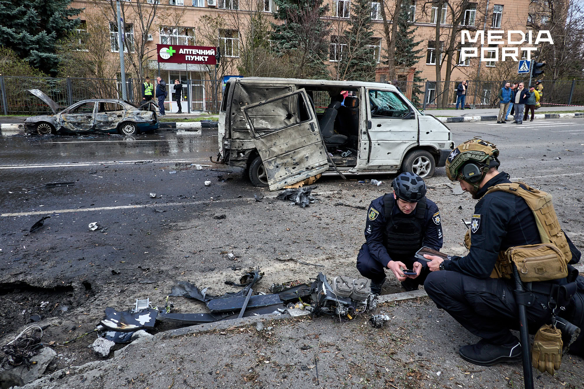 Вдень 3 квітня російський безпілотник влучив у дорогу в центрі Харкова — поруч із медзакладами. На місці влучання загорілися автомобілі, постраждали щонайменше семеро людей, серед них — 2-річна дитина. Двоє поранених померли у лікарні: 60-річний чоловік, а за кілька годин — 29-річна жінка. Очевидці дронової атаки розповіли «МедіаПорту» про те, що відбувалося під час обстрілу.