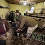Перед виїздом техніку обслуговують: перевіряють гусениці, механізми, зв’язок. Далі НРК доставляють на точку, де його завантажують провізією — водою та їжею для позицій.