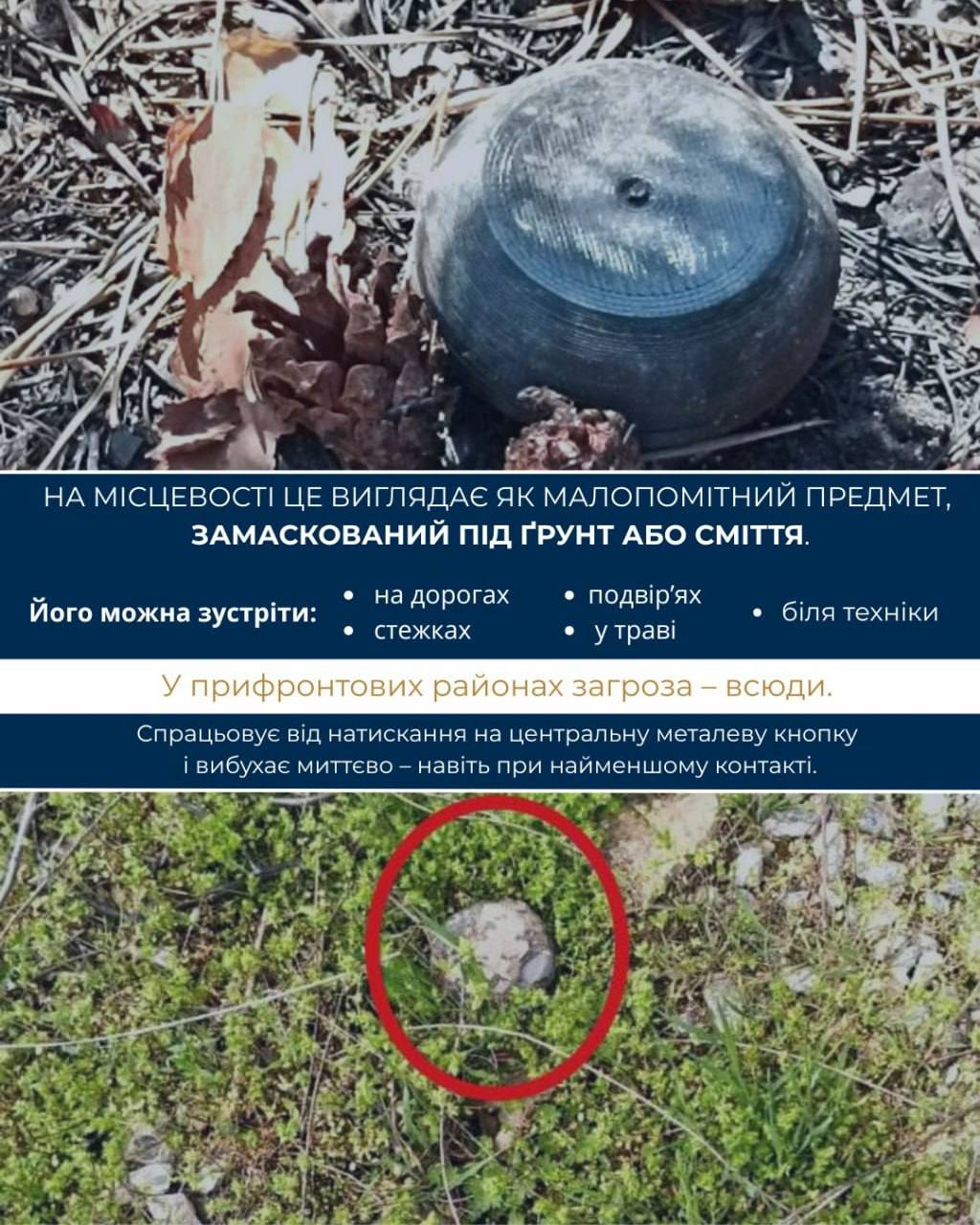 «Пряники» легко маскуються під землю, траву або сміття. Їх можуть скидати на поля, дороги, узбіччя, подвір’я тощо.
