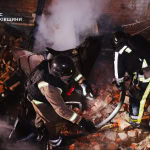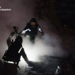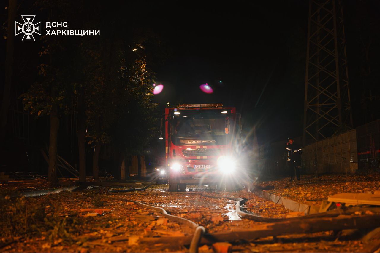 Рятувальники гасять пожежу після російського обстрілу Харкова.