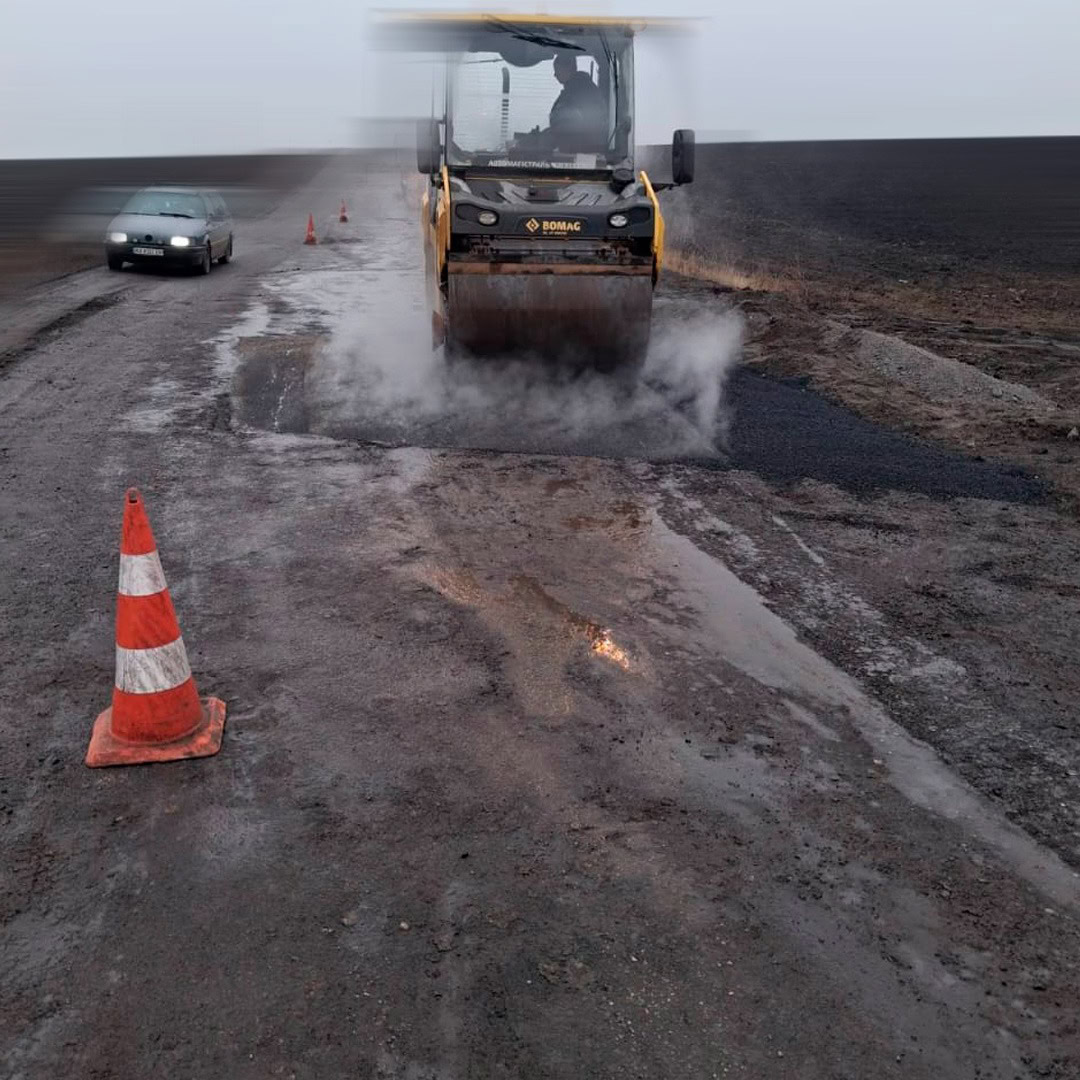 «Для відновлення основи дорожнього одягу було використано 44 тонни піщано-щебеневої суміші, після чого влаштовано нове покриття з використанням 7,2 тонни гарячого асфальтобетону», — наводять подробиці у Службі.