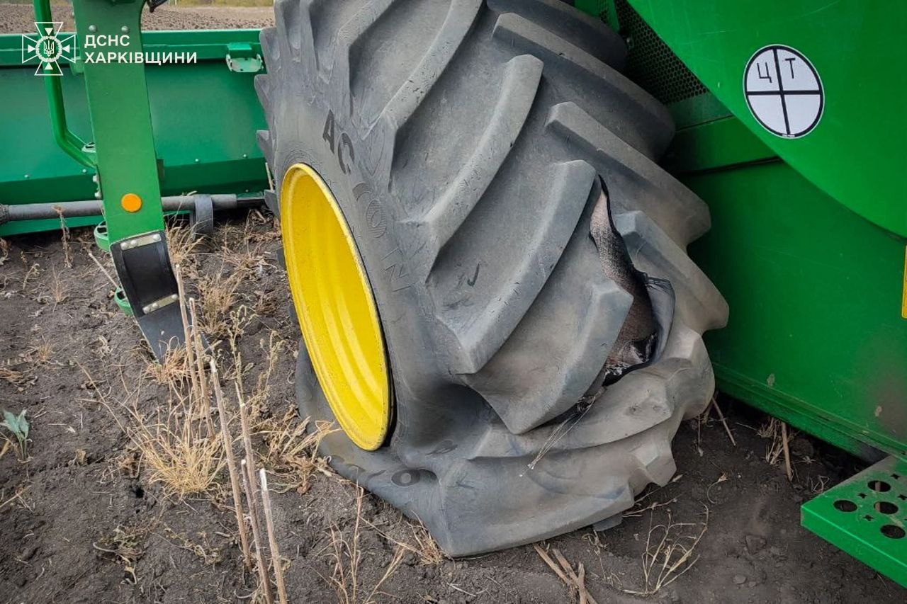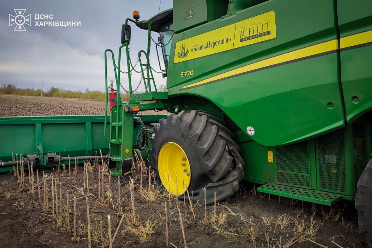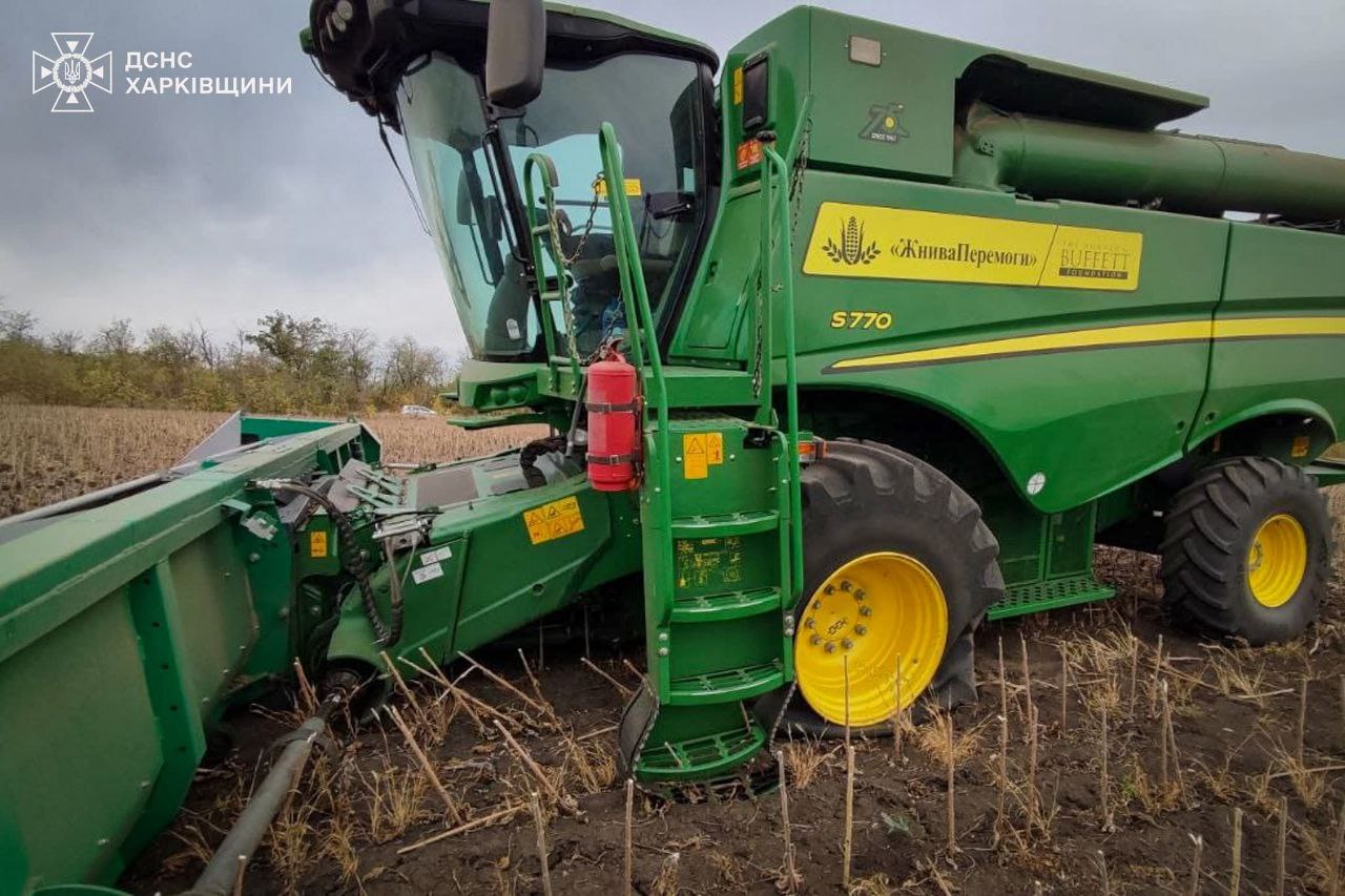 В одному з населених пунктів Ізюмського району в полі підірвався комбайн. За попередніми даними ДСНС, він наїхав на протипіхотну міну.