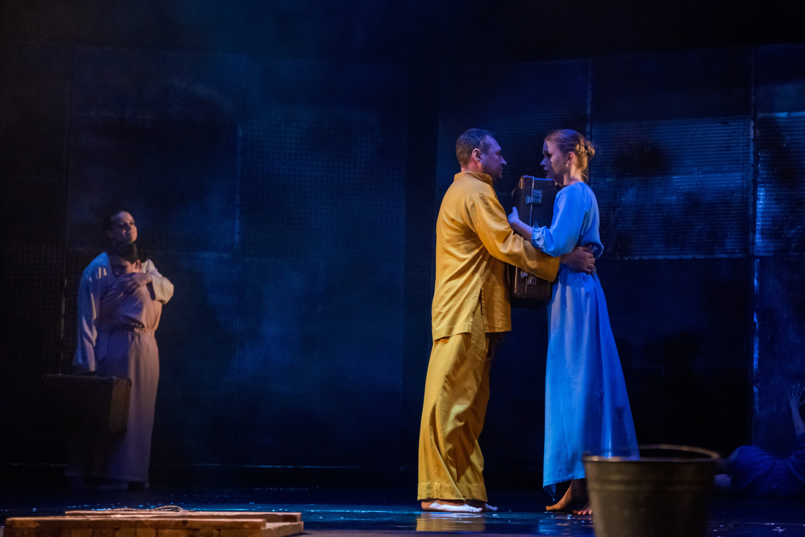 Вже перша загадкова мізансцена, напевно, може слугувати прологом і своєрідним ключем для інтерпретації цілого. Перед нами мовчазний екстатичний діалог двох незнайомців. Вони здаються схожими, але вони різні. Два всесвіти, між якими розіпʼяте наше життя. Театральна сцена мимоволі стає прірвою — нездоланним водорозділом між ними. Актори обмінюються не словами, а жестами та рухами, незрозумілими посланнями, тягнуться один до одного, але один одного не здатні досягти. Між ними — безодня.