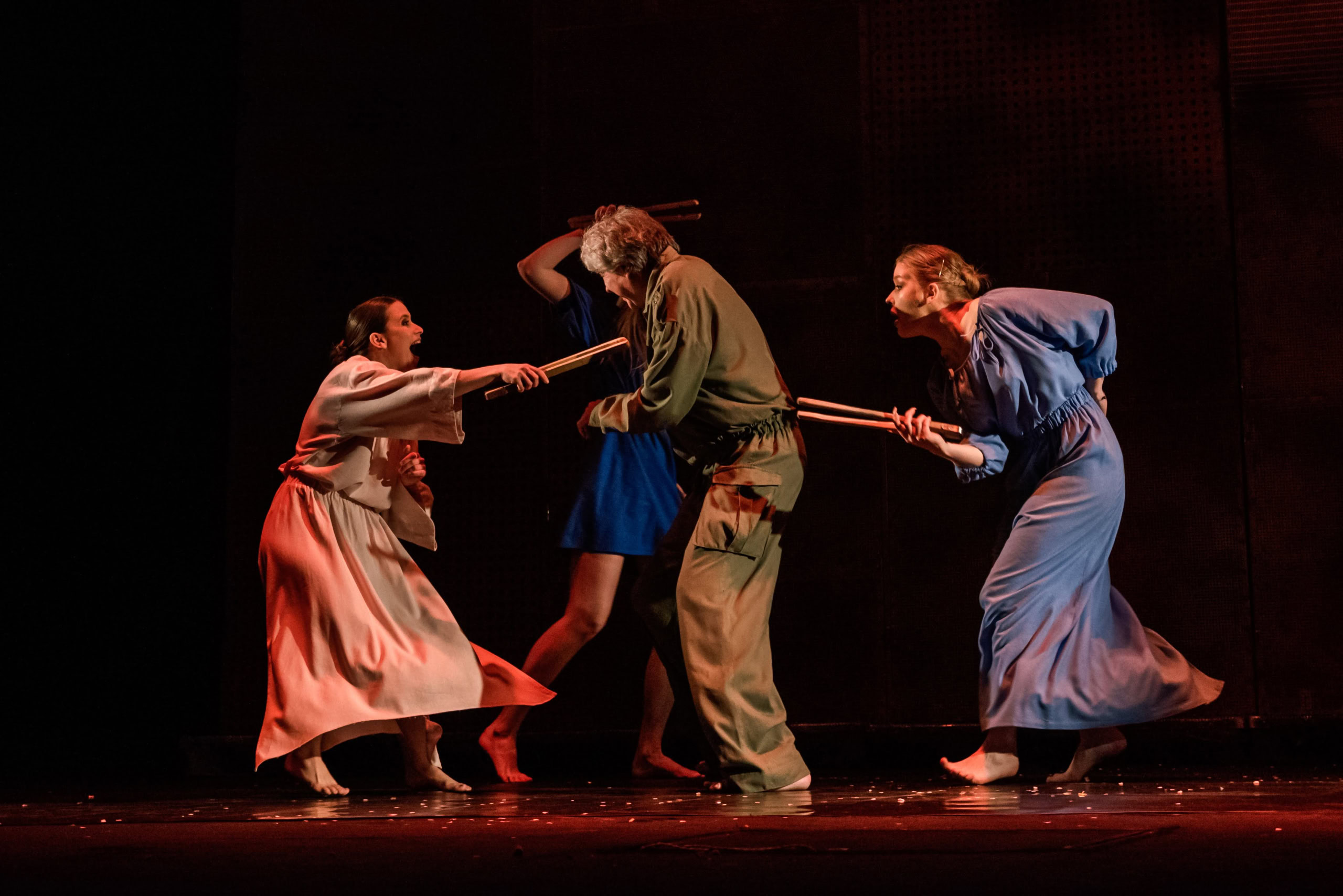 Постаті на сцені то розчиняються у спільному ритмі, то знову розділяються, як уламки одного серця. У цій виставі немає єдиного героя, бо герой тут — сам простір між «я» і «ми». Розмова про Шевченка стає розмовою про нас: про націю, що вміє одночасно страждати і сміятися, воювати і співати, мовчати і промовляти. Тут Україна — не держава, а стан душі, що намагається впізнати власне відображення. Двійники проходять крізь темряву сцени, ніби крізь власну історію. Вони нагадують, що Україна завжди була на межі — між імперією й свободою, між вигнанням і поверненням, між смертю і воскресінням. І саме це тремтіння між двома станами і є нашою сутністю.