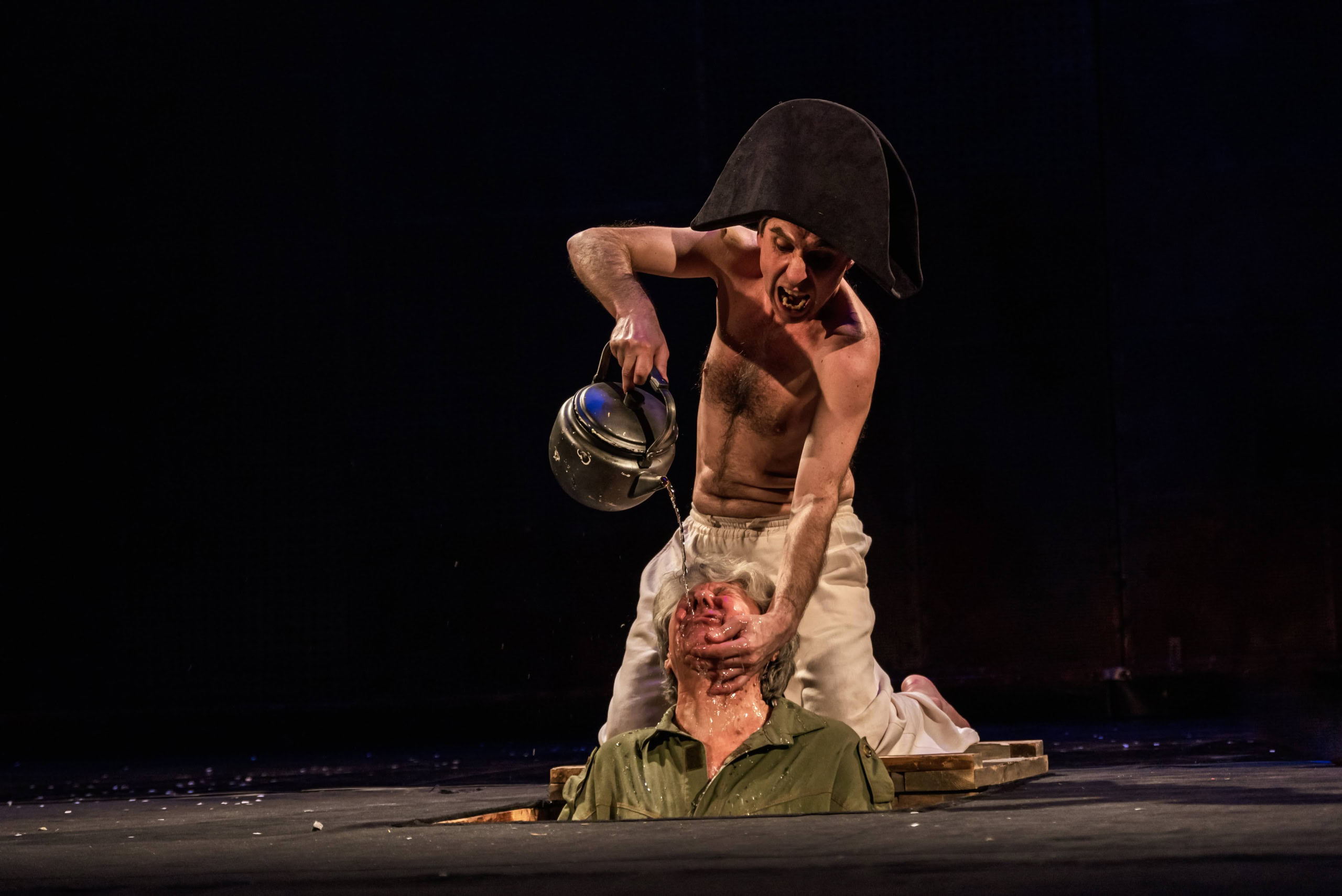 Ось лише один знаковий епізод у художній траєкторії вистави, той епізод, що є її нервом і може розповісти про притаманні їй миттєві стрибки між світами. Позаминуле століття. Солдатчина. Тарасового товариша карають за непокору жорсткими ударами, кількість яких здається незліченною. Напруга зростає. З кожним новим ударом біль стає все сильніше, серце стискається, і ви провалюєтесь у безвихідь. Перед вами світ «банальності зла», несправедливості та безглуздого насилля. Тарасів товариш приходить до тями, обертається до глядачів, запалює цигарку і вигукує: «Слава Україні!»…
