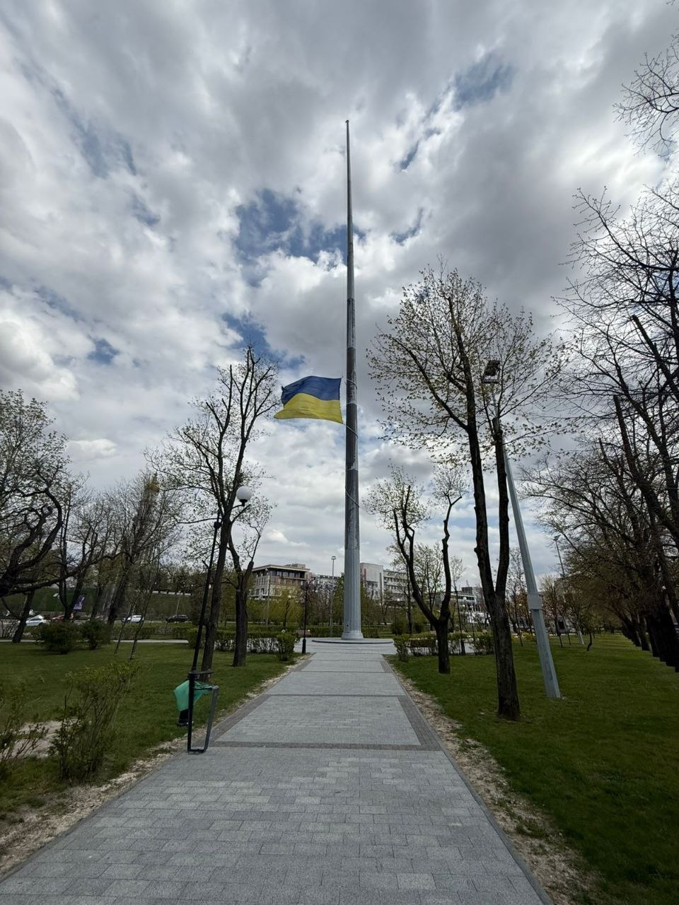 У пресслужбі Харківської міської ради повідомили, що через сильний вітер працівники «Харківзеленбуду» приспустили державний прапор на флагштоку у центрі міста.