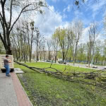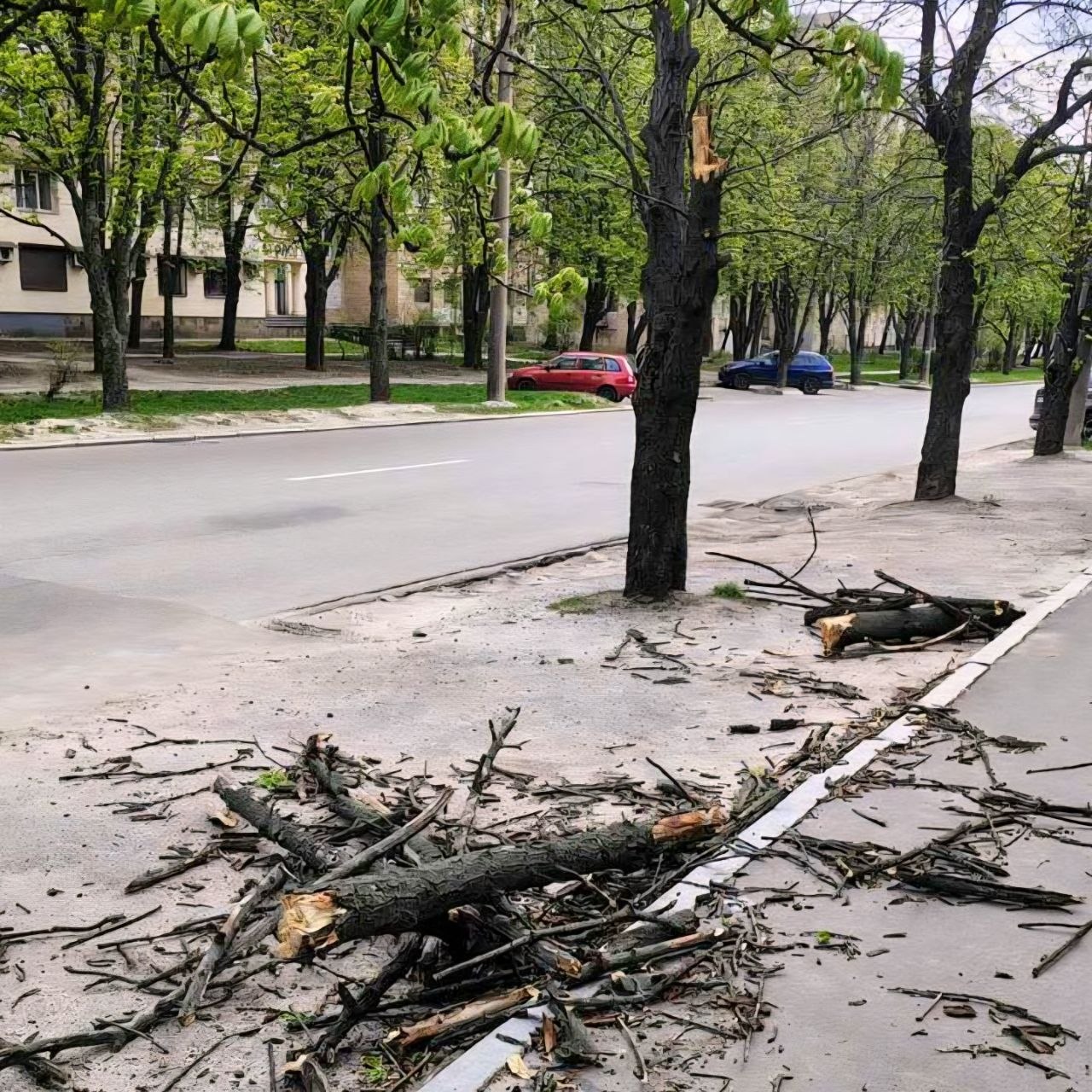 Харківські комунальники прибирають по місту зламані дерева та гілки.