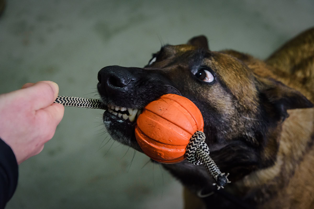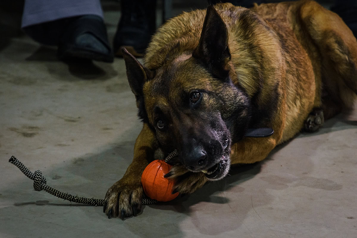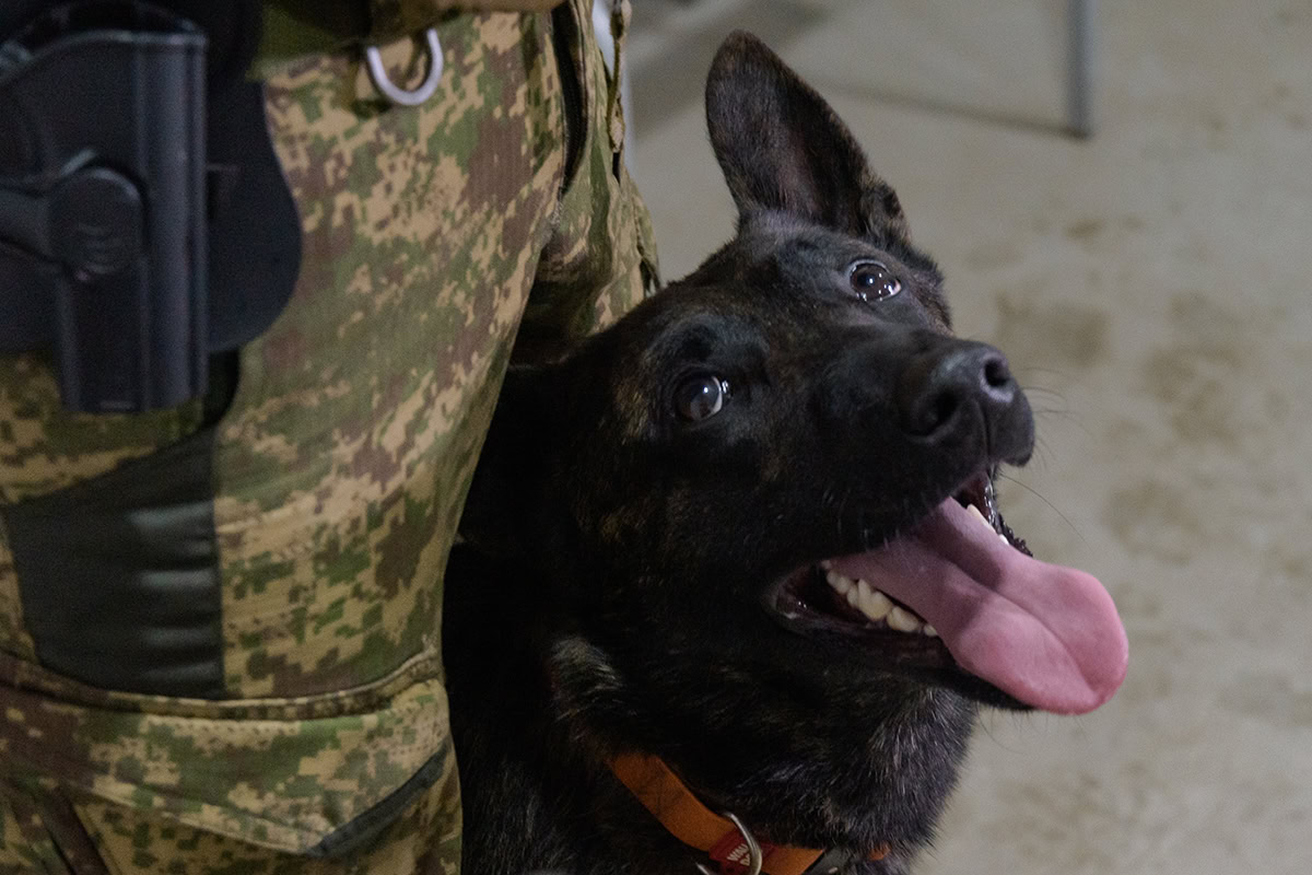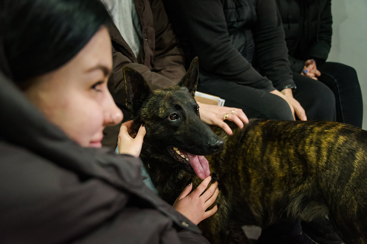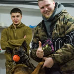 До бійців привезли двох службових собак: Слім — голландська вівчарка, Бігі — бельгійська вівчарка малінуа. Обидва — чемпіони України серед службових собак у різних номінаціях.