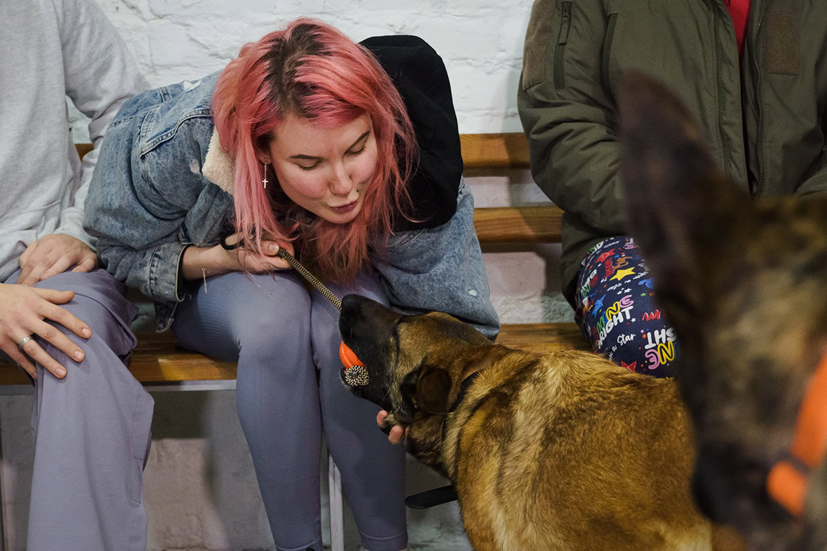 «По-перше, це зниження психоемоційного напруження після перенесених подій, це перемикання фокусу уваги з негативних спогадів після бойових дій та травматичних спогадів після лікування на позитивний досвід — тут і зараз. По-друге, це соціальні контакти, тому що бійці контактують не лише з тваринами, але й із кінологами», — пояснює Кузнецов.