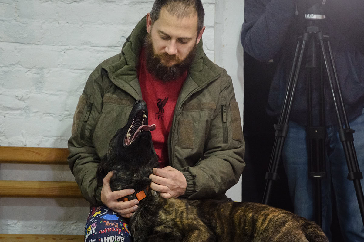 «Я не знаю, як це можна пояснити з наукового погляду, це не підтверджено жодними дослідженнями. Але ви могли бачити, як тут собака підходила до наших поранених побратимів. У мене був особистий досвід: коли ми займалися з Бігі, я підвернув ногу, вона в мене боліла понад місяць. Я забрав Бігі додому. І чомусь вона сама, коли я лягав спати, спала біля ноги, яка боліла», — згадує Бахішев.