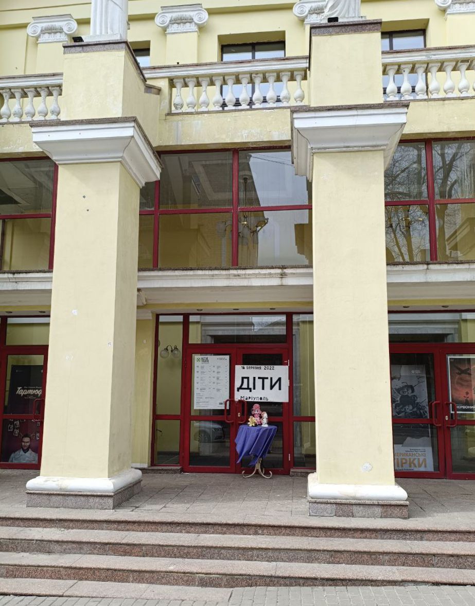 16 березня 2022 року російська армія завдала авіаудару по Маріупольському драмтеатру, де ховалися цивільні. Перед театром був великий напис «Діти». Унаслідок удару, за різними оцінками, загинули від 300 до 600 людей.