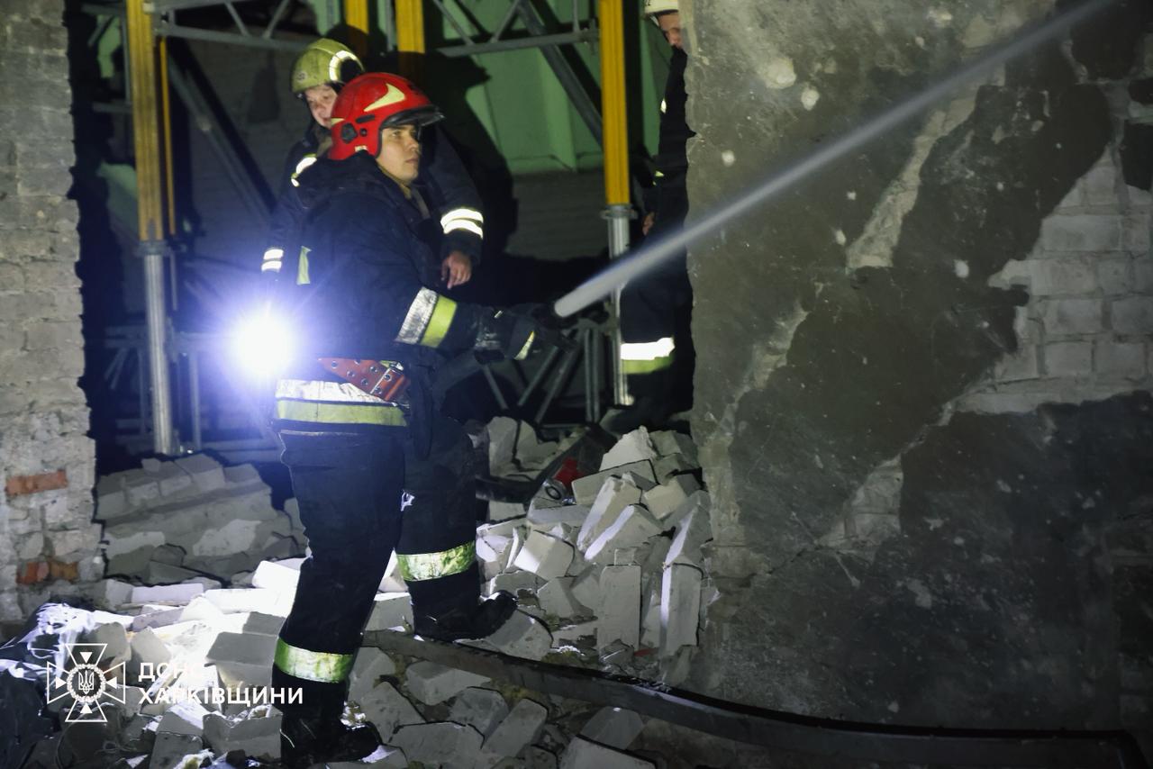 На місцях влучань спалахнули пожежі, горіли поштове відділення і станція техобслуговування, додають у ДСНС Харківщини.